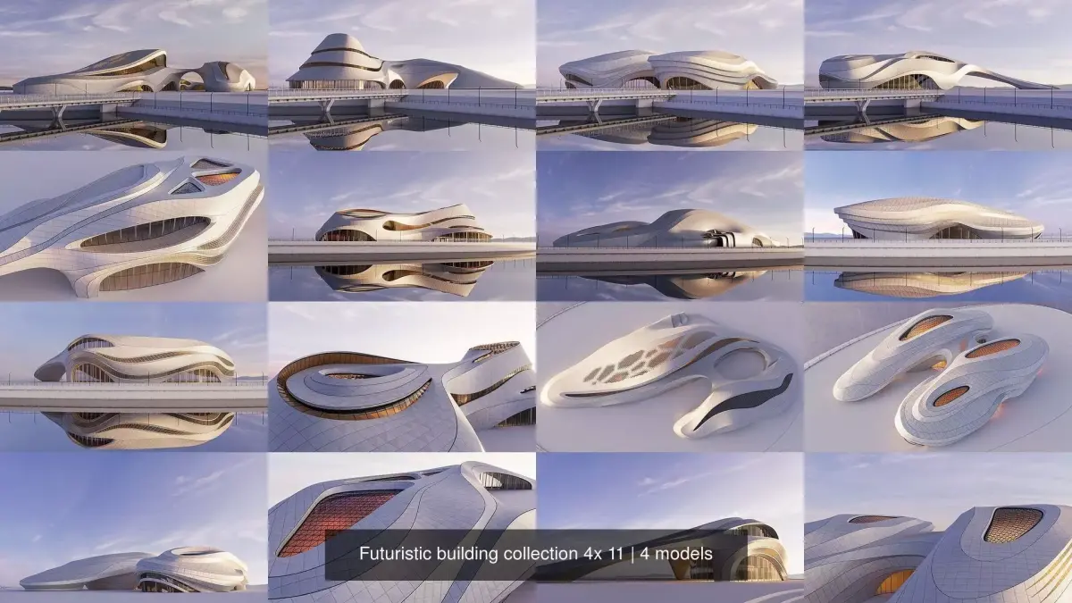 Futuristic building collection 4x 11