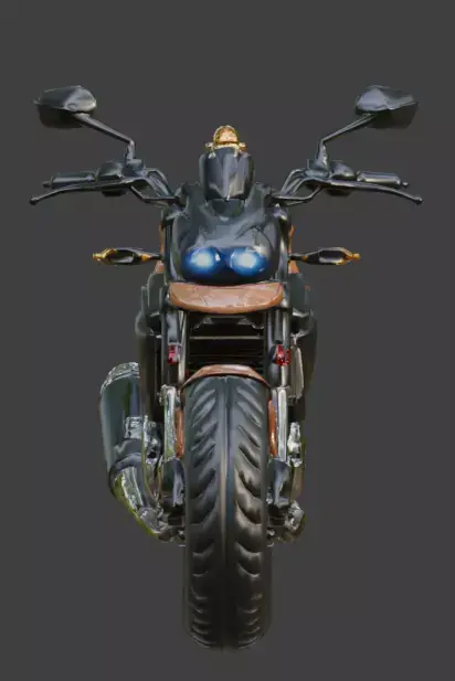 This premium 3D model features a high-quality futuristic off-road motorcycle designed in a rugged yet animated movie style. The vehicle is characterized by its chunky wheels, lifted suspension, and a minimalist no-face design, emphasizing a modern robotic aesthetic.