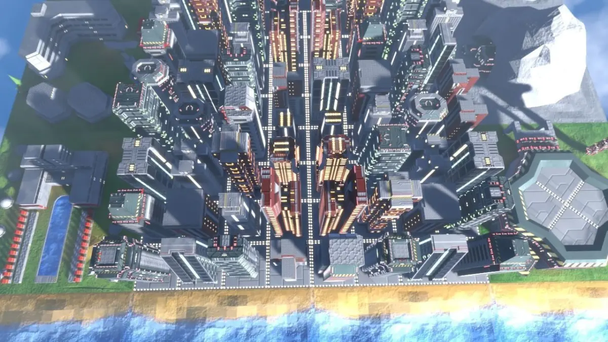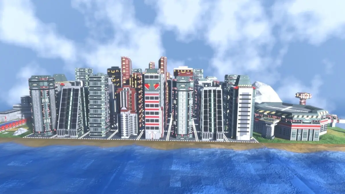 Earth like planet map tiles 20 buildings, 3 mountains, 6 trees, beach, water. 2048px color, roughness, emission, bump texture atlas. Lowpoly. Optmized for real time engine. Can be used as background or isometric map for games.