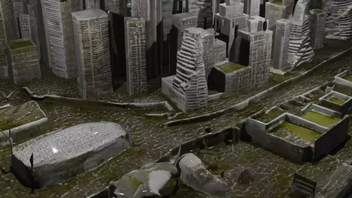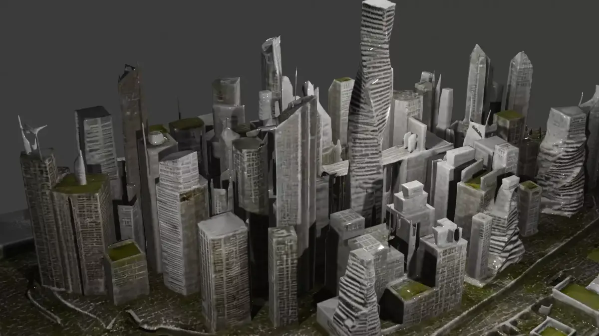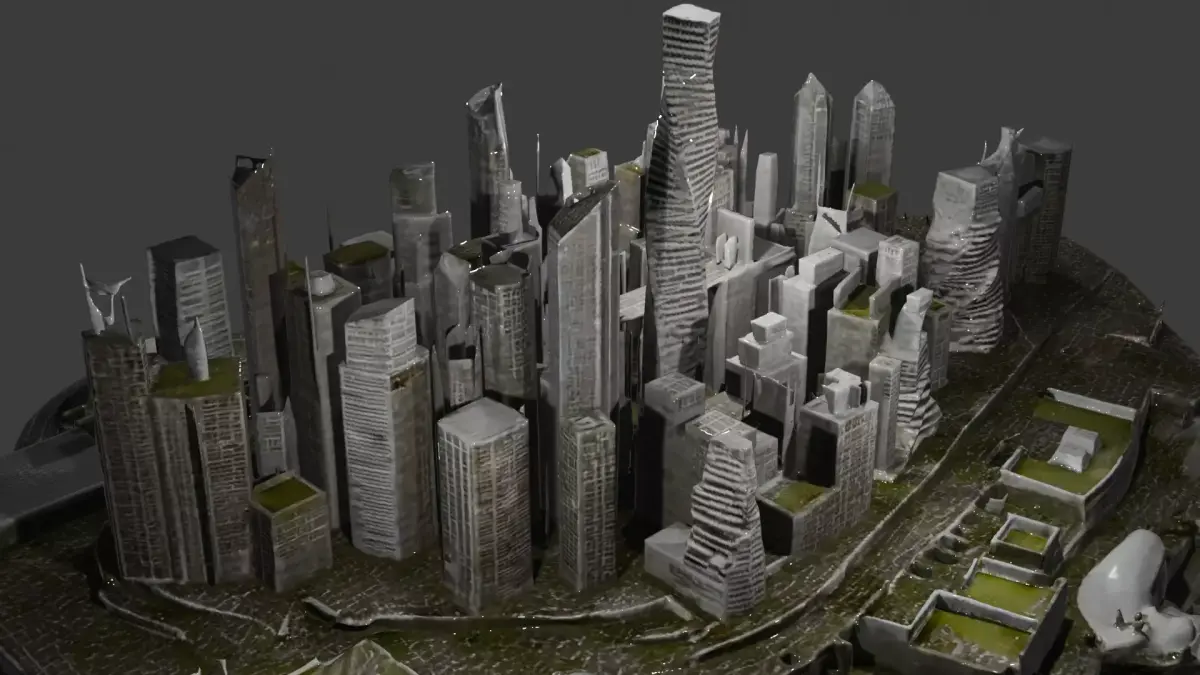 High-quality 3D model of a futuristic cityscape featuring a dense urban environment with modern skyscrapers and architectural landmarks.