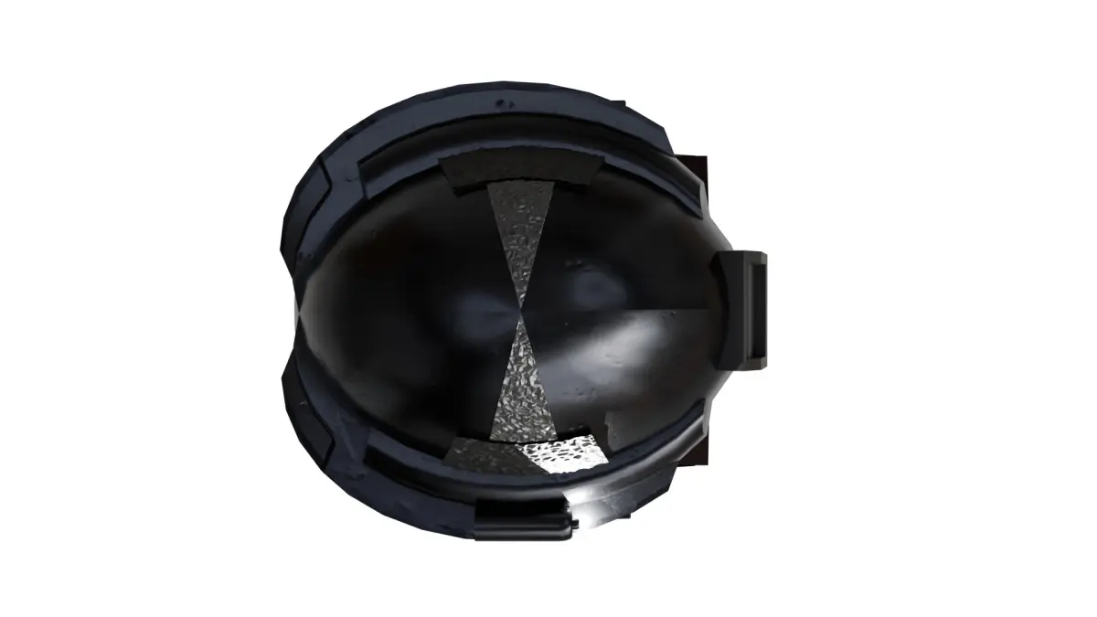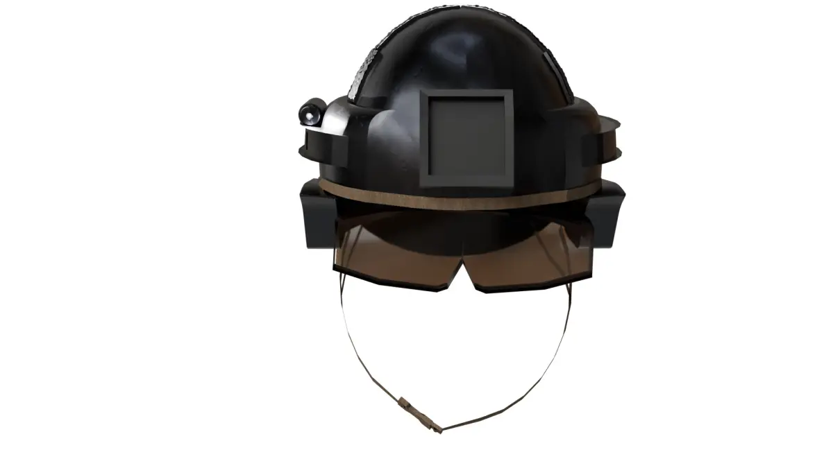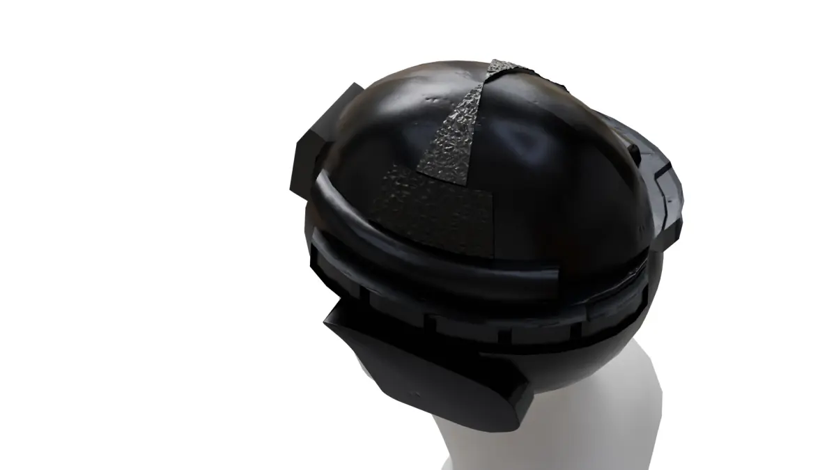 This is a high-quality 3D model of a futuristic combat helmet, designed with a sleek and modern aesthetic. The helmet features: