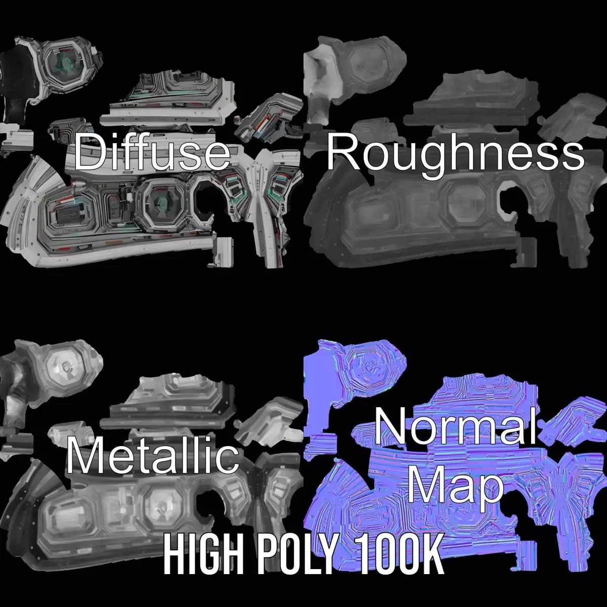 This highly detailed futuristic control panel is perfect for sci-fi environments and spaceship interiors. Each model has 3 levels of detail: low-poly (1000 triangles for mobile), middle-poly (10,000 triangles for environment), and high-poly (100,000 triangles), which allows for the use of this model in production rendering (such as 3ds Max, Maya, Cinema 4D, Blender, Vray/Corona/Cycles, and all others), game engines (Unity and Unreal compatible), and interactive presentations, providing a choice of detail based on the LOD System principle. Ideal for film, animations, and video games, this model is designed with an intricate mix of metallic and luminous textures. The model's textures are PBR, Diffuse, NormalMap, and reflection/roughness/metallic, which are suitable for any modern rendering engine. All models are accurately unwrapped and have no overlapping UV. Textures are 4096*4096 in size. If you liked the model, please like and leave a comment.