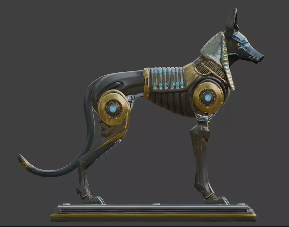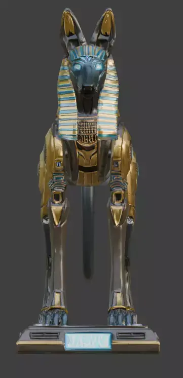 Tagscyberpunk anubis, 3D sci-fi statue, robotic jackal, neon hieroglyphs, metallic armor, game-ready character, PBR textures, futuristic egypt, VR/AR optimized, cybernetic model