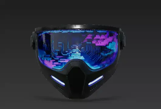 The Overall Concept This asset is the quintessential hacker or street samurai headgear for a near-future setting. It combines physical face protection with an immersive digital interface, perfect for characters who live in the net or pilot high-speed hovercrafts.