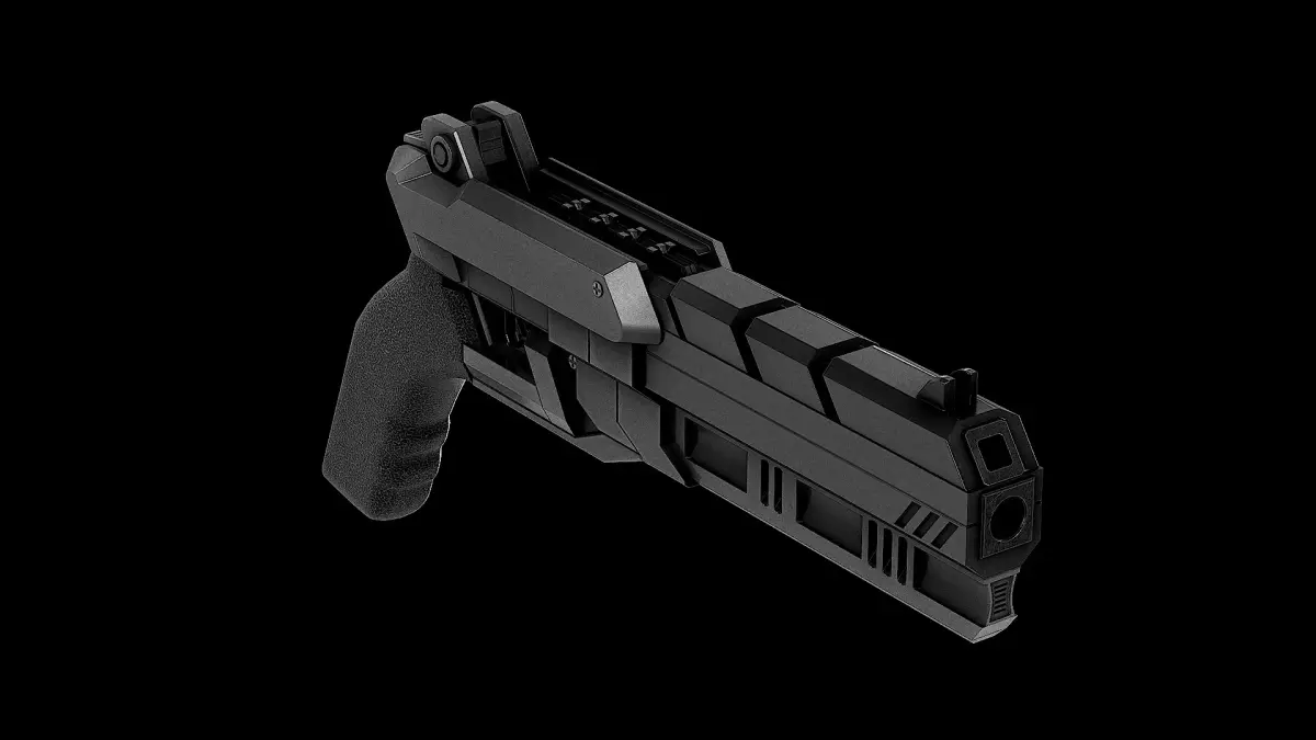 This sci-fi sidearm combines sleek modern design with advanced detailing, making it ideal for cyberpunk, space, or military environments.
