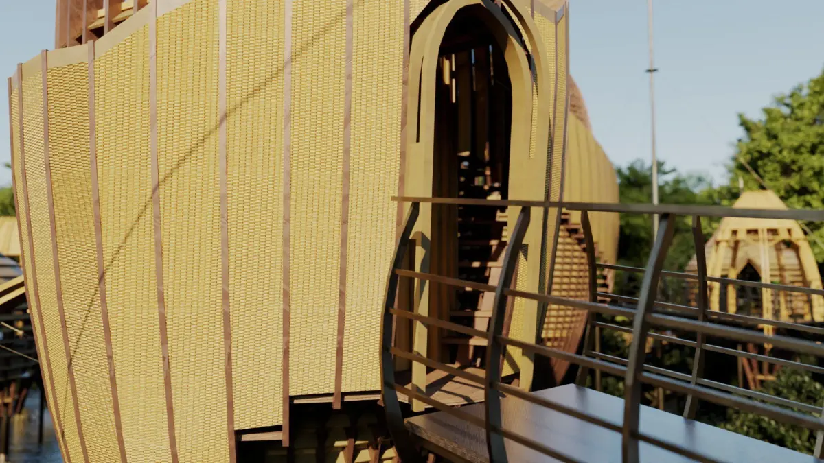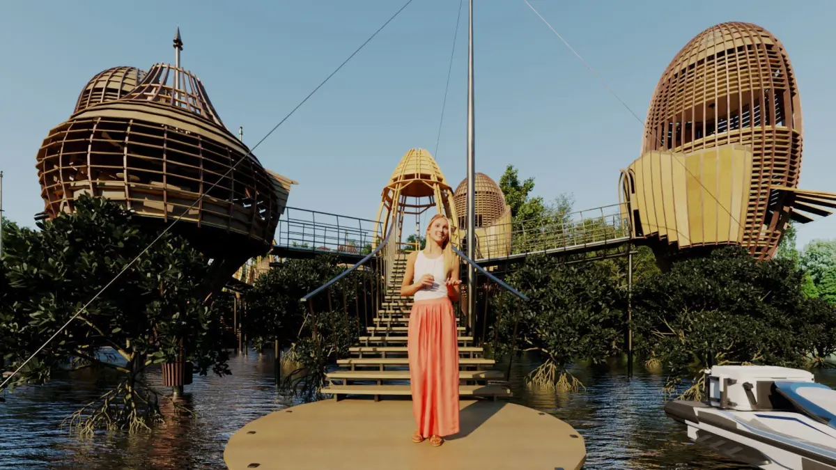 This 3D model represents a Interior & Exterior futuristic eco-resort masterfully integrated into a tropical mangrove forest. The design reflects a deep respect for nature while embracing cutting-edge organic architecture and sustainable tourism principles. Its elevated structure and bridge-connected private pods allow guests to explore the forest canopy without disturbing the fragile mangrove ecosystem.