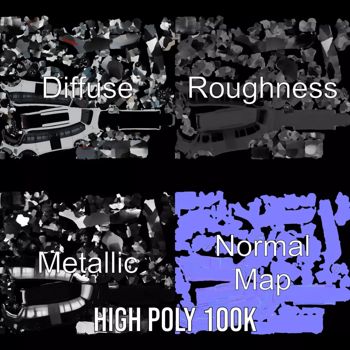 This futuristic electric bus model combines sleek design with advanced technology, ideal for urban planning, game environments, and architectural visualization. Each model has 3 levels of detail: low-poly (1000 triangles for mobile), mid-poly (10,000 triangles for environment), and high-poly (100,000 triangles). Compatible with production rendering in software like 3ds Max, Maya, Cinema 4D, Blender, and Vray/Corona/Cycles, as well as game engines like Unity and Unreal, it's perfect for interactive presentations. The model features PBR textures, Diffuse, NormalMap, and reflection/roughness/metallic maps, suitable for any modern rendering engine. All models are accurately unwrapped with no overlapping UVs. All textures are 4096*4096 in size. If you like this model, please leave a comment and a like!