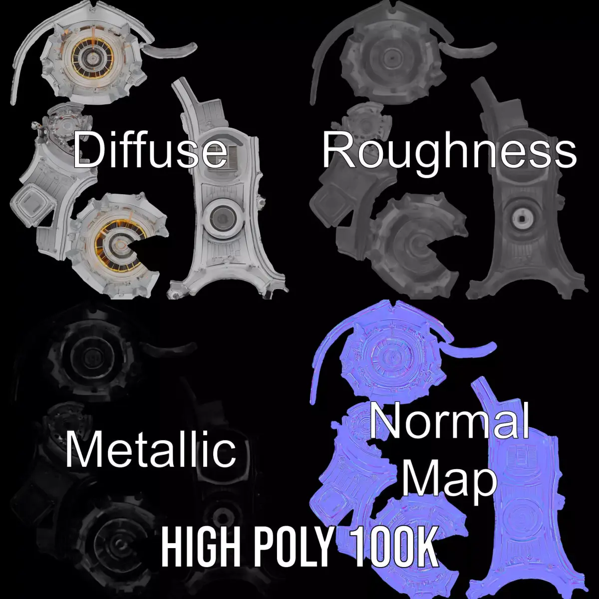 This 3D model pack features a futuristic energy core with intricate mechanical details, ideal for sci-fi environments. Each model has 3 levels of detail: low-poly (1000 triangles for mobile), middle-poly (10,000 triangles for environment), and high-poly (100,000 triangles), which allows for the use of this model in production rendering such as 3ds Max, Maya, Cinema 4D, Blender, Vray/Corona/Cycles, and all other modern rendering engines. Game engines (Unity and Unreal compatible) and interactive presentations benefit greatly from this adaptable model, offering flexibility based on the LOD System principle. The model's key features include PBR textures, Diffuse, Normal Map, and reflection/roughness/metallic maps that are 4096*4096 in size, suitable for any modern rendering engine. All models are accurately unwrapped and have no overlapping UVs. This energy core model is perfect for use in futuristic set designs, sci-fi animations, and video games. Please, like and leave a comment for the model if you liked it. The first image is the reference used for creating the 3D model. It is important to carefully evaluate the quality of the model by examining the preview images that display the topology and polygonal mesh. These previews (WIRE and WEB 3D Preview) clearly demonstrate how accurately the model matches the original reference and how well the geometry has been executed.