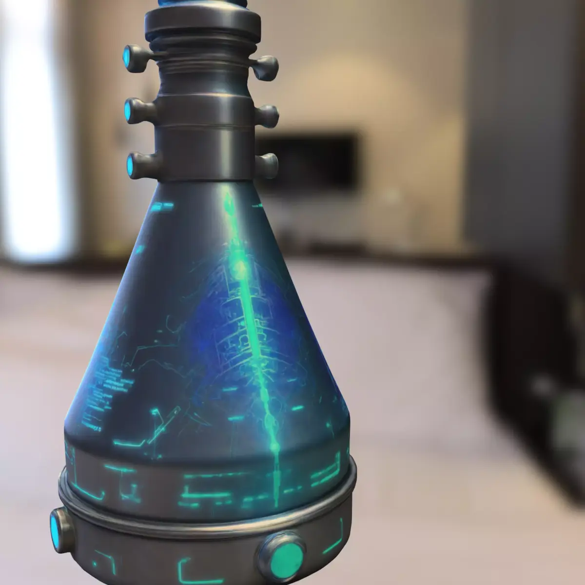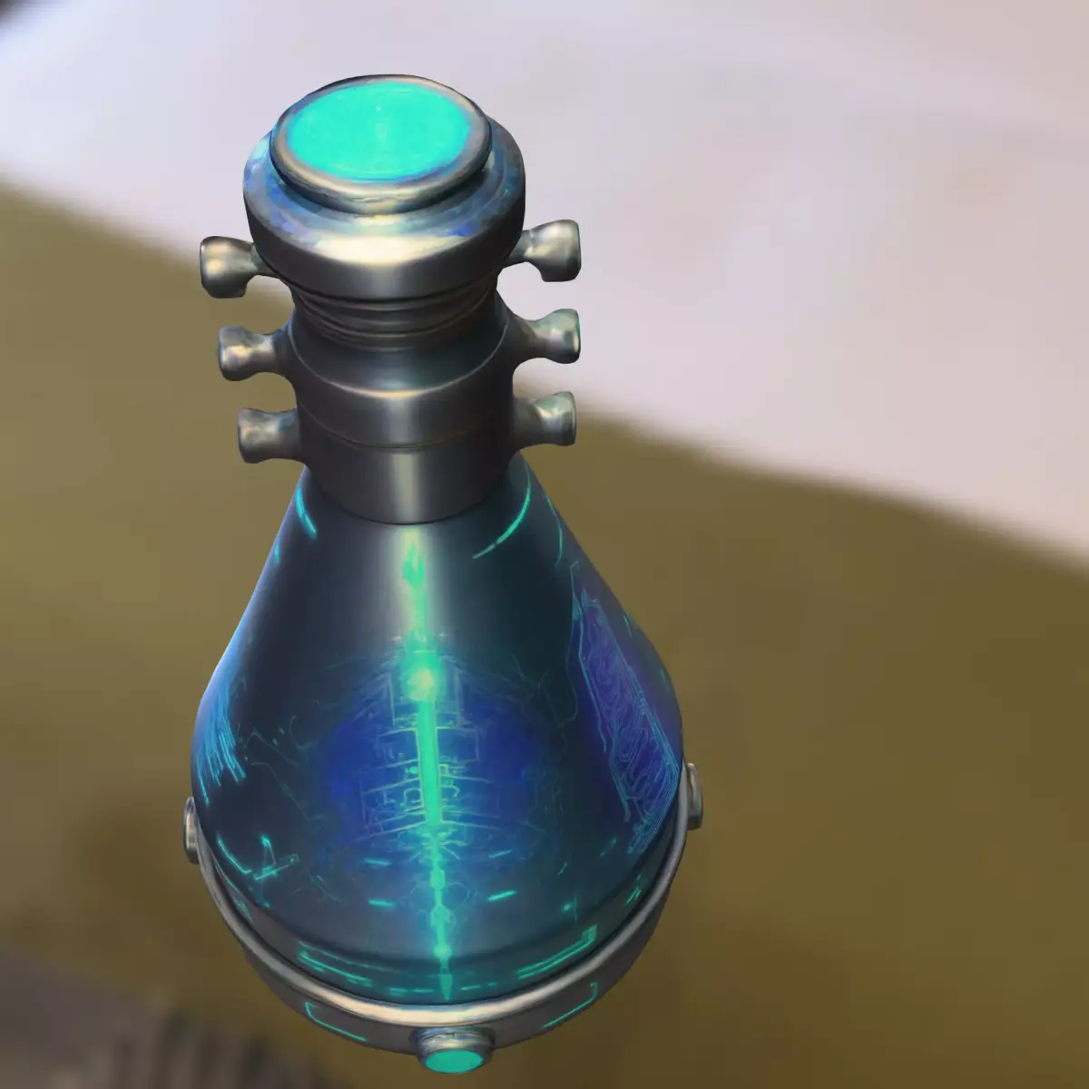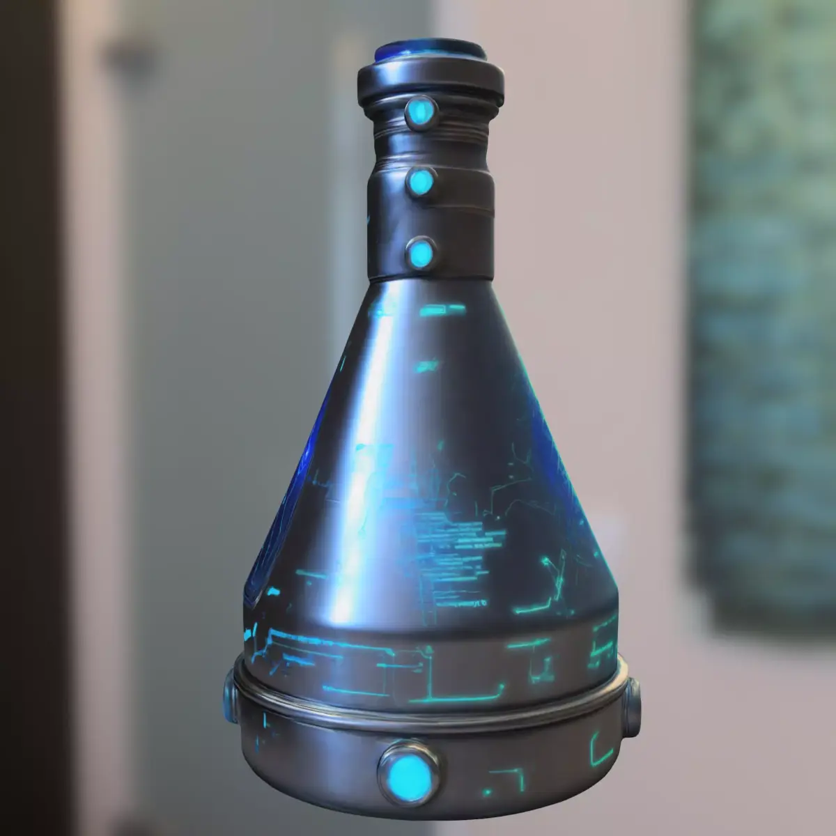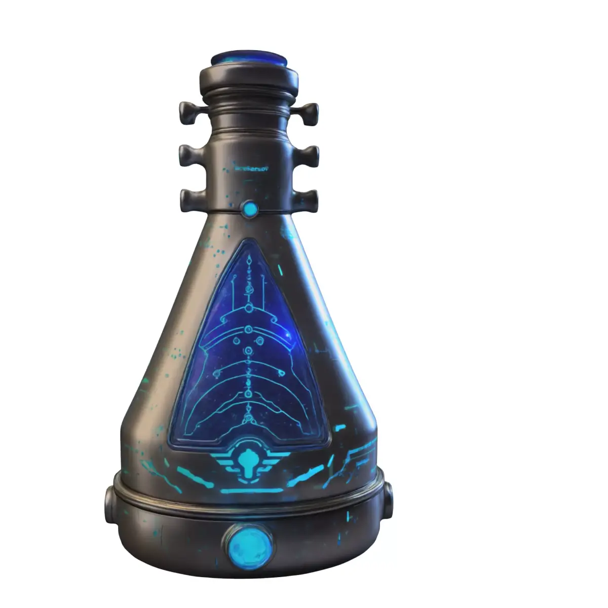 Highly detailed futuristic energy flask with glowing blue circuitry and advanced sci-fi design, perfect for use as a collectible, consumable, or quest item in popular games like Destiny 2, Starfield, Fortnite, and Cyberpunk 2077. Optimized for major game engines such as Unity and Unreal Engine. Provided in multiple formats (OBJ, FBX, STL, DAE, PLY, GLB, Blender) for maximum compatibility. Fully prepared for 3D printing, making it ideal for props, cosplay, and collectible displays.