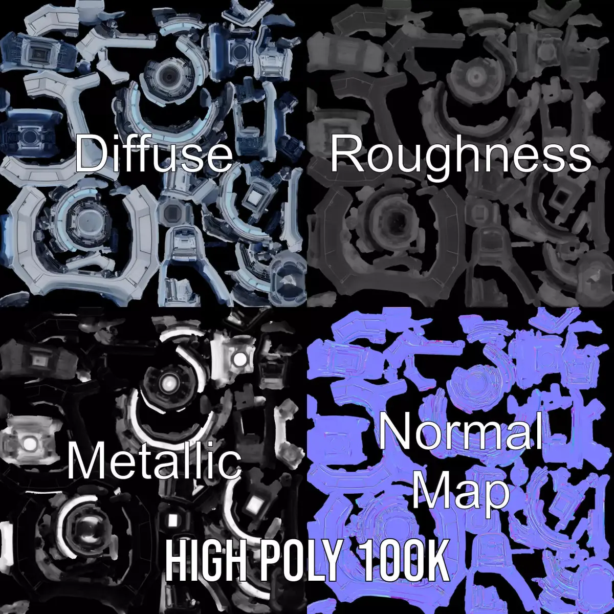 This futuristic engine core model pack is designed for sci-fi enthusiasts and developers. Each model has 3 levels of detail: low-poly (1000 triangles for mobile), middle-poly (10,000 triangles for environment), and high-poly (100,000 triangles), which allows for the use of this model in production rendering (such as 3ds Max, Maya, Cinema4D, Blender, V-Ray/Corona/Cycles and all others), game engines (Unity and Unreal compatible), and interactive presentations, providing a choice of detail based on the LOD System principle. Ideal for use in sci-fi environments, animations, games, and virtual reality experiences. The model's textures are PBR, Diffuse, NormalMap, and reflection/roughness/metallic, which are suitable for any modern rendering engine. All models accurately unwrapped and have no overlapping UV. All textures are 4096*4096 in size. The first image is the reference used for creating the 3D model. It is important to carefully evaluate the quality of the model by examining the preview images that display the topology and polygonal mesh. These previews (WIRE and WEB 3D Preview) clearly demonstrate how accurately the model matches the original reference and how well the geometry has been executed. Please like and leave a comment for the model if you enjoyed it.