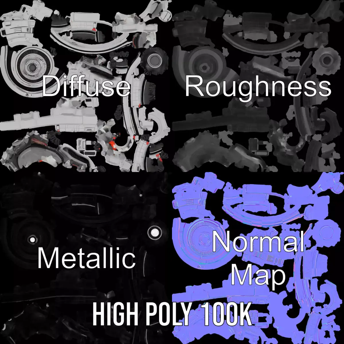 Explore the versatility of our Futuristic Engine Model Pack, perfect for science fiction environments. Each model has 3 levels of detail: low-poly (1000 triangles for mobile), middle-poly (10,000 triangles for environment), and high-poly (100,000 triangles), allowing use in production rendering applications such as 3ds Max, Maya, Cinema 4D, Blender, and Vray/Corona/Cycles, as well as game engines like Unity and Unreal, and interactive presentations. Ideal for use in films, video games, and virtual reality experiences, providing realistic sci-fi propulsion systems. The model's textures are PBR, Diffuse, NormalMap, and reflection/roughness/metallic, suitable for any modern rendering engine. All models accurately unwrapped with no overlapping UV. The first image is the reference used for creating the 3D model. It is important to carefully evaluate the quality of the model by examining the preview images that display the topology and polygonal mesh. These previews (WIRE and WEB 3D Preview) clearly demonstrate how accurately the model matches the original reference and how well the geometry has been executed. All textures are 4096x4096 in size. If you enjoy this model, please like and leave a comment.