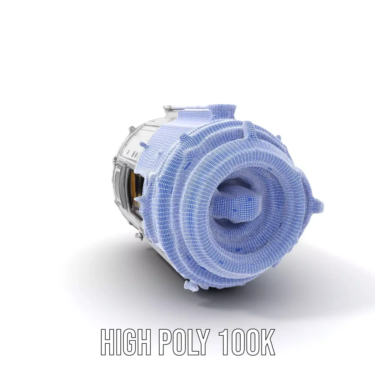 This Futuristic Engine Model Pack is designed with high attention to detail and versatility. Each model has 3 levels of detail: low-poly (1000 triangles for mobile), middle-poly (10,000 triangles for environment), and high-poly (100,000 triangles), which allows for the use of this model in production rendering (such as 3ds Max, Maya, Cinema4D, Blender, Vray/Corona/Cycles and all other), game engines (Unity and Unreal compatible), and interactive presentations, providing a choice of detail based on the LOD System principle.