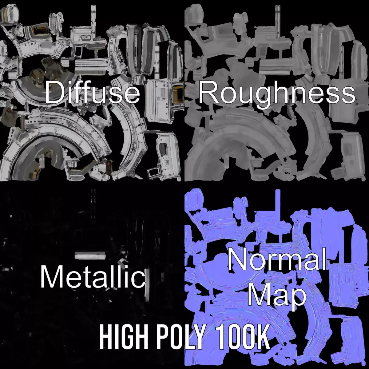The model's textures are PBR, Diffuse, NormalMap, and reflection/roughness/metallic, which are suitable for any modern rendering engine. All models accurately unwrapped and have no overlapping UV. All textures are 4096*4096 in size.