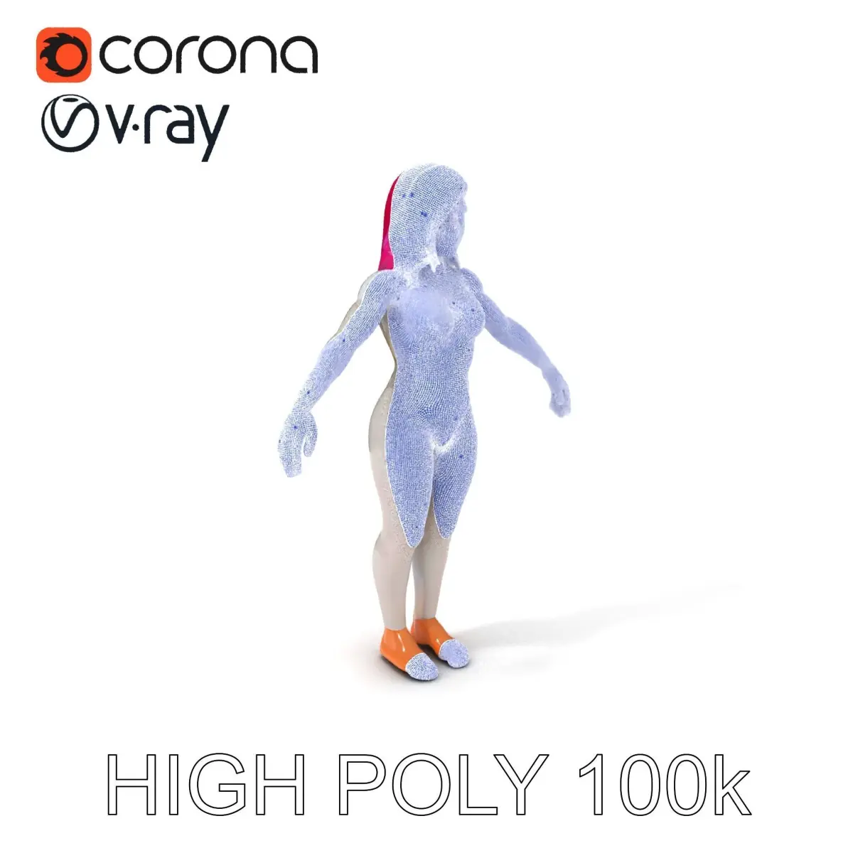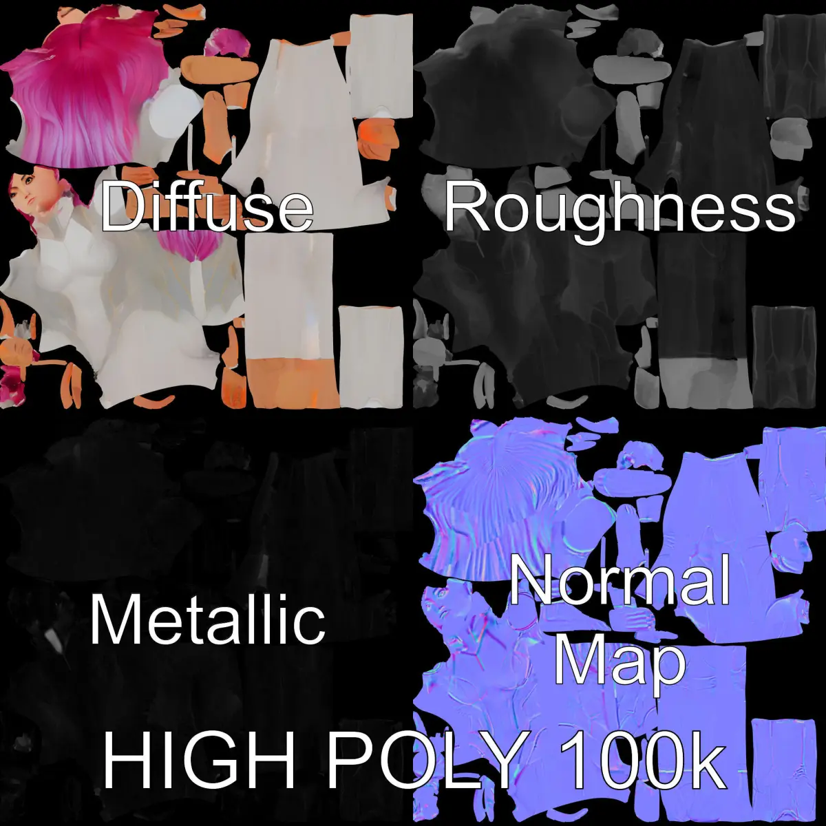 This 3D model pack features a futuristic female character with sleek, modern design, perfect for use in sci-fi animations, video games, and virtual reality experiences. The model is available in three levels of detail: low-poly (1000 triangles) for mobile applications, middle-poly (10,000 triangles) for environments, and high-poly (100,000 triangles) for high-quality rendering in tools like Maya, 3ds Max, and Blender. PBR textures include Diffuse, NormalMap, and reflection/roughness/metallic, all with 4096x4096 resolution to ensure versatile use across various platforms. This model is meticulously unwrapped with no overlapping UVs, facilitating easy texturing and rendering.