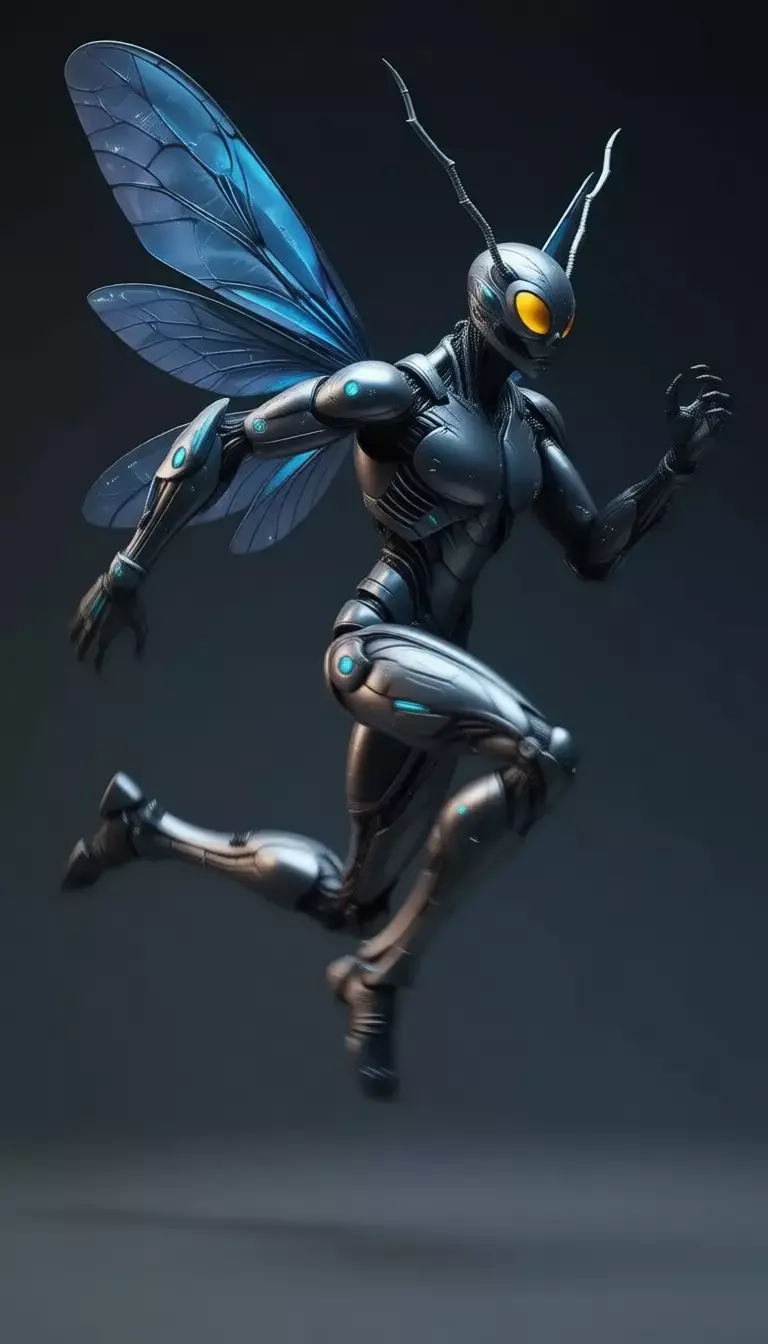 A main character or boss in video games, animated films, or VR experiences.A brand mascot for tech companies, environmental brands, or gaming hardware.A product visualization for concept drones, NFT collectibles, or sci-fi merchandise.A social media hero for Instagram posts, YouTube thumbnails, or TikTok filters targeting fans of sci-fi and robotics.A print-ready illustration for posters, t-shirts, mugs, phone cases, or packaging design.Its design balances aesthetic minimalism with functional realism, appealing to fans of “Transformers,” “Ghost in the Shell,” “Battlestar Galactica,” and “Deus Ex.” Unlike generic sci-fi drones, this one has strong narrative potential — its insect form suggests it’s part of a larger ecosystem or AI network, perfect for storytelling.