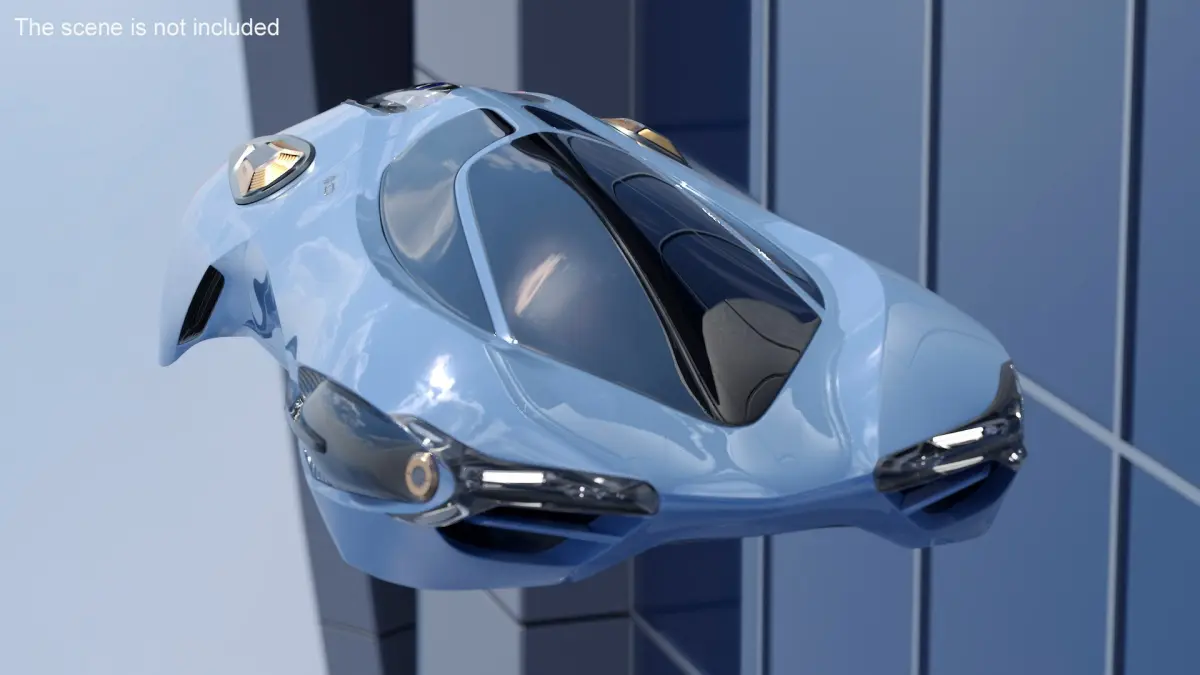 Futuristic Flying Car Blue is a three-dimensional model of futuristic urban flying car, that is depicted as a sci-fi flying vehicle designed for efficient and advanced transportation in densely populated cities.