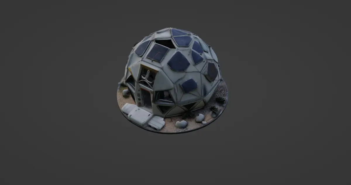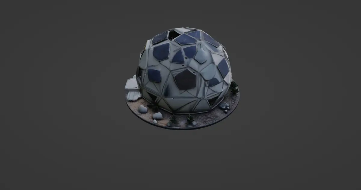 This high-quality 3D model showcases a futuristic geodesic habitat module, designed for space colonization scenarios. The structure features a dome-shaped design, constructed with reinforced metallic panels, and is equipped with integrated solar panels to harness renewable energy. The entrance is highly detailed, featuring a reinforced airlock door system, illuminated control panels, and a retractable ramp for accessibility. The exterior is adorned with hexagonal and pentagonal panels, giving it a highly realistic sci-fi aesthetic.The model is optimized for both cinematic and game-ready applications, featuring detailed texturing and realistic material shaders. The modularity of the structure allows for easy adaptation into larger colonies, making it an excellent asset for futuristic environments, space exploration games, and sci-fi cinematics. The base includes a realistic terrain setting with scattered rocks, patches of grass, and desert-like textures, adding an immersive planetary touch.All textures are included, ensuring a seamless workflow when integrating into projects. The model is downloadable in .gmb format, with an additional .fbx version available for compatibility with a wide range of 3D software. Its efficient polygon count and UV mapping ensure a balance between visual fidelity and performance optimization.Perfect for sci-fi enthusiasts, game developers, and 3D artists, this space colony habitat module is a must-have asset for any futuristic or extraterrestrial project. Whether for cinematic renderings, VR applications, or interactive environments, this model provides a high level of detail and realism for creating immersive off-world settlements.