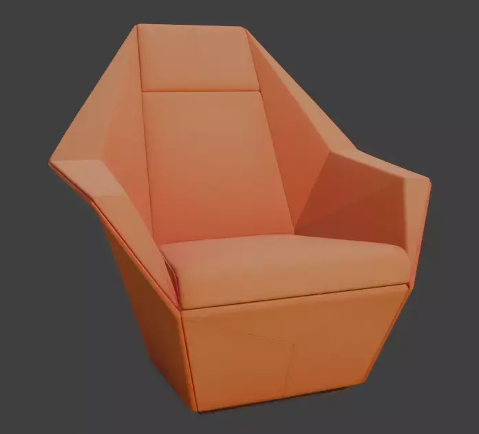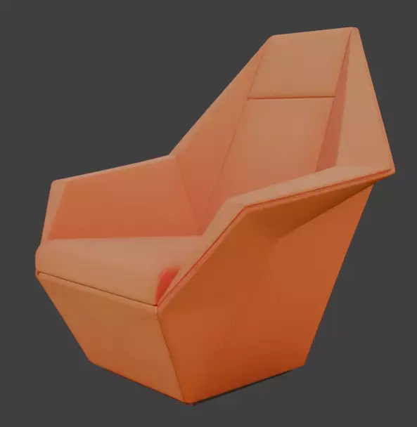 Bold and eye-catching 3D model of a contemporary sculptural lounge chair with sharp origami-inspired faceted geometry and a soft peach matte finish. Perfect for modern luxury interiors, art galleries, high-end waiting areas, concept visualizations, sci-fi environments, architectural renders, VR spaces, and stylish game levels.Real-world scale (centimeters), 100% clean quad topology, subdivision-ready, non-overlapping UVs. Comes with 4K PBR textures (BaseColor, Roughness, Metallic, Normal, Height, AO). All objects and materials properly named and organized. Ready for instant use in Blender, Maya, 3ds Max, Cinema 4D, Unreal Engine, Unity—no plugins required.