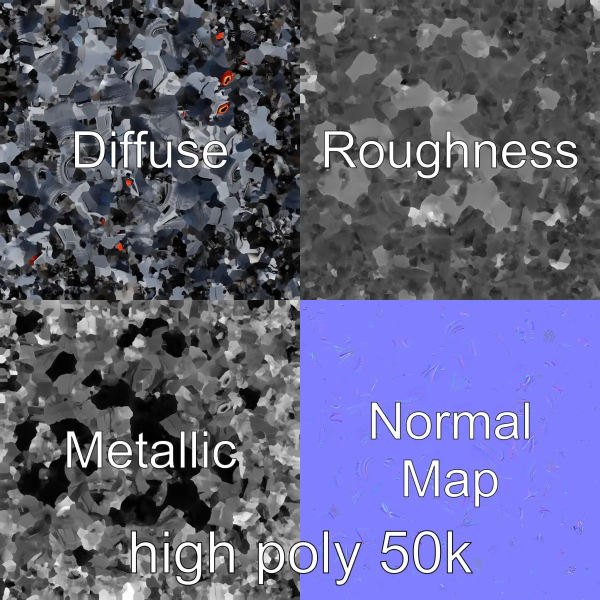 The model's textures are PBR, Diffuse, NormalMap, and reflection/roughness/metallic, which are suitable for any modern rendering engine. All models are accurately unwrapped with no overlapping UVs. All textures are 4096*4096 in size.