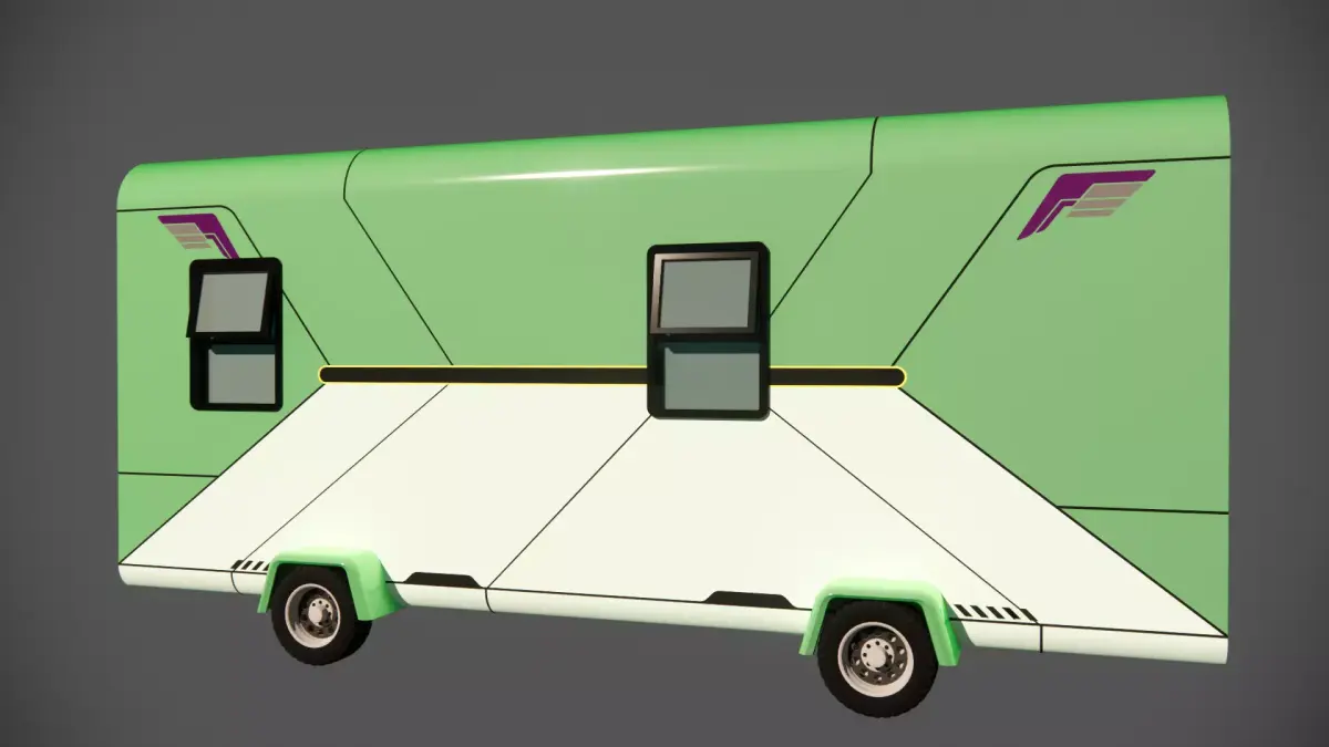 This cutting-edge camper trailer redefines mobile living with its sci-fi inspired, angular design and striking two-tone green finish. Built for both aesthetics and performance, its aerodynamic profile reduces drag for improved fuel efficiency, while the reinforced composite body ensures durability and lightweight handling. The sleek, frameless tinted windows and integrated LED accent lighting deliver a premium, modern look, while the modular interior layout (customizable to your specifications) maximizes space and comfort. Whether you’re a digital nomad, adventure traveler, or futurist enthusiast, this camper combines head-turning style with practical functionality for the ultimate on-the-go lifestyle.