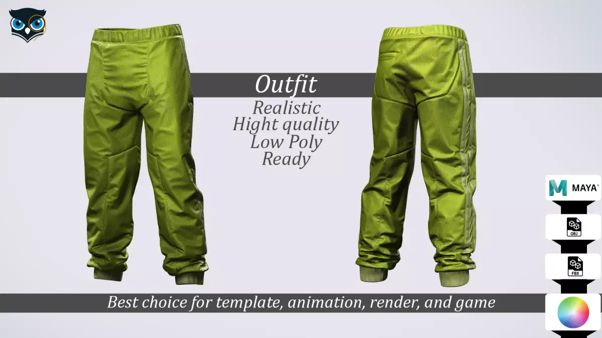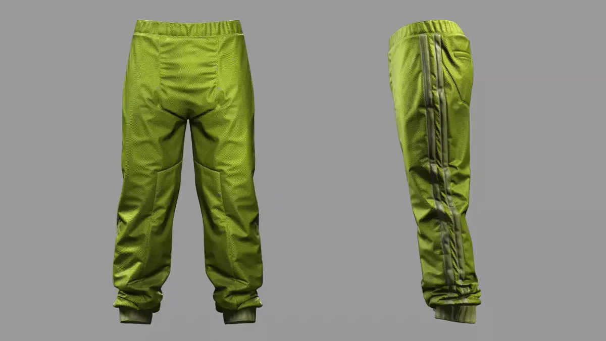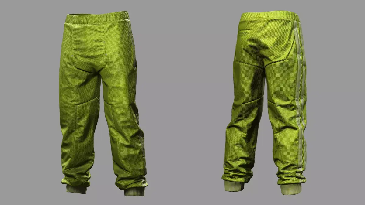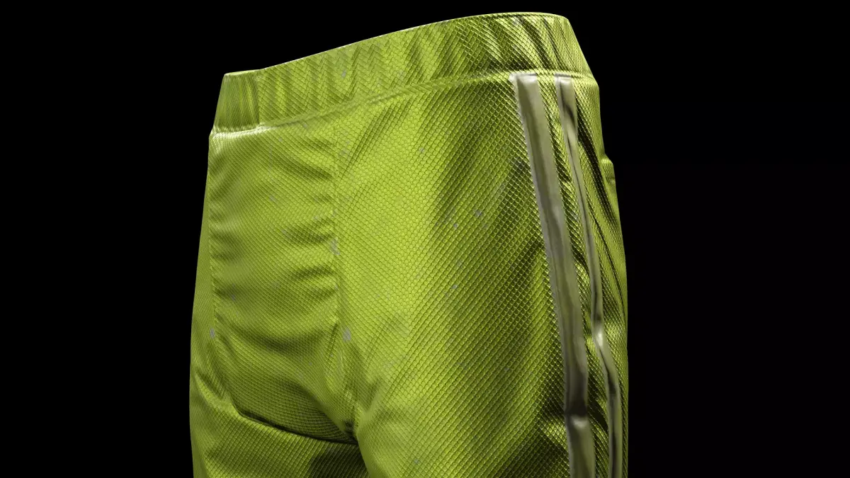 This 3D clothing model features bright futuristic green pants with a modern synthetic fabric look and structured paneling. Designed for a bold, high-tech aesthetic, these pants are perfect for sci-fi, cyberpunk, or stylized characters in games and film.