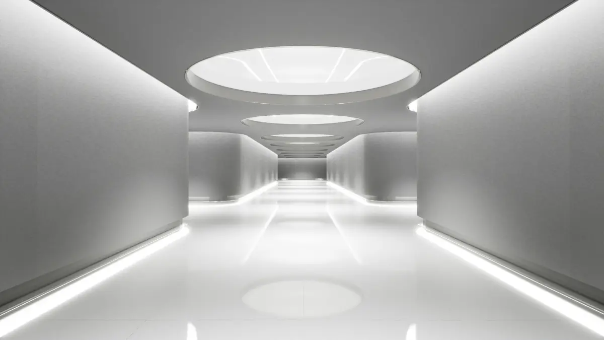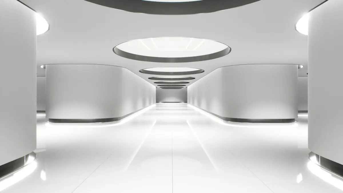 A DETAILED UNREAL UE4 SCENE OF A FUTURISIC HALLWAY: