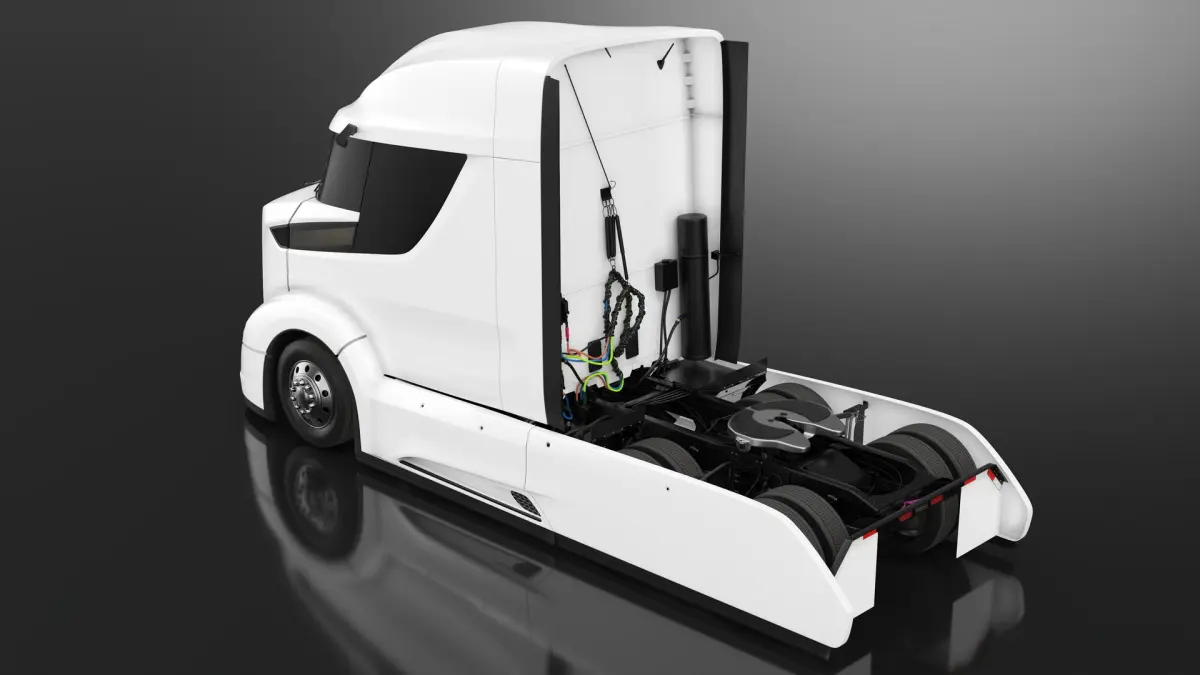 Commercial truck vehicle without trailer that developed to improve fuel efficiency and reduce emissions, and that is designed to challenge truck makers with improving freight efficiency using a diesel engine as the main power source. Innovative freight truck that featured fuel efficiency and environmental sustainability. Futuristic truck that showcases a sleek, aerodynamic design, lightweight construction, and advanced powertrain technologies.