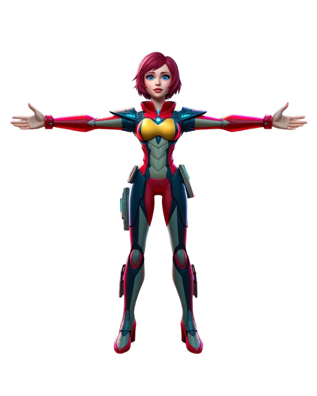 Explore a dynamic 3D model of a heroine in vibrant armor, designed for futuristic and sci-fi settings. Each model has 3 levels of detail: low-poly(1000 triangles for mobile), middle-poly(10 000 triangles for environment), and high-poly(100 000 triangles), which allows for the use of this model in production rendering(such as 3ds max, Maya,Cinema4d, Blender, Vray/Corona/Cycles and all other), game engines(Unity and Unreal compatible), and interactive presentations, providing a choice of detail based on the LOD System principle. Perfect for game development, cinematic projects, and virtual reality experiences. The model's textures are PBR, Diffuse, NormalMap, and reflection/roughness/metallic, which are suitable for any modern rendering engine. All models accurately unwrapped and has no overlapping UV. Separate all text by parts. At the end of the description, add a request to like and leave a comment for the model if they liked it. Also add that all textures are 4096*4096 in size. Please like and leave a comment if you enjoyed this model!