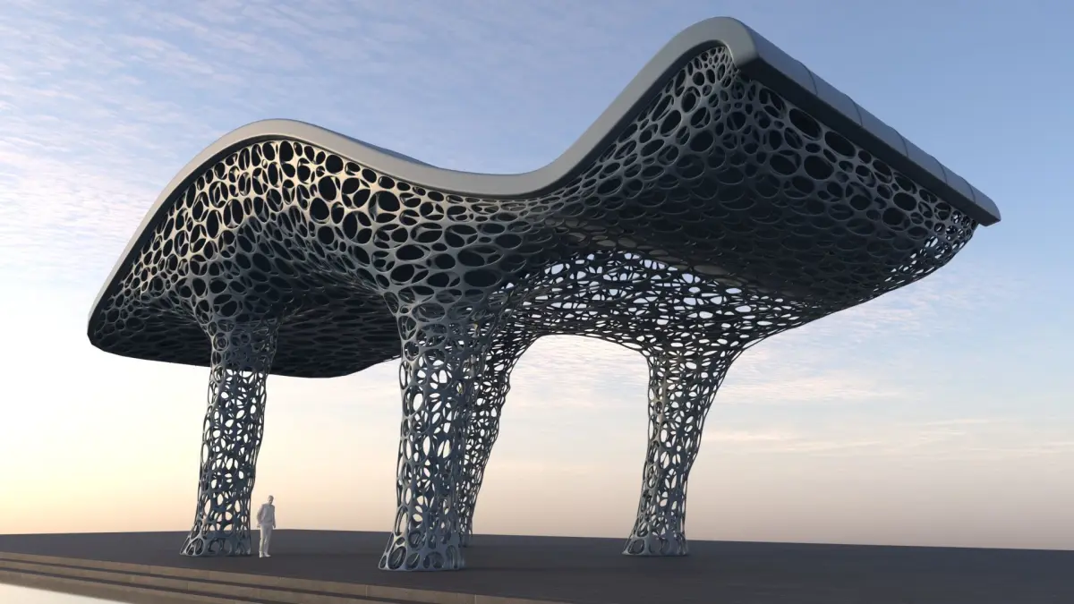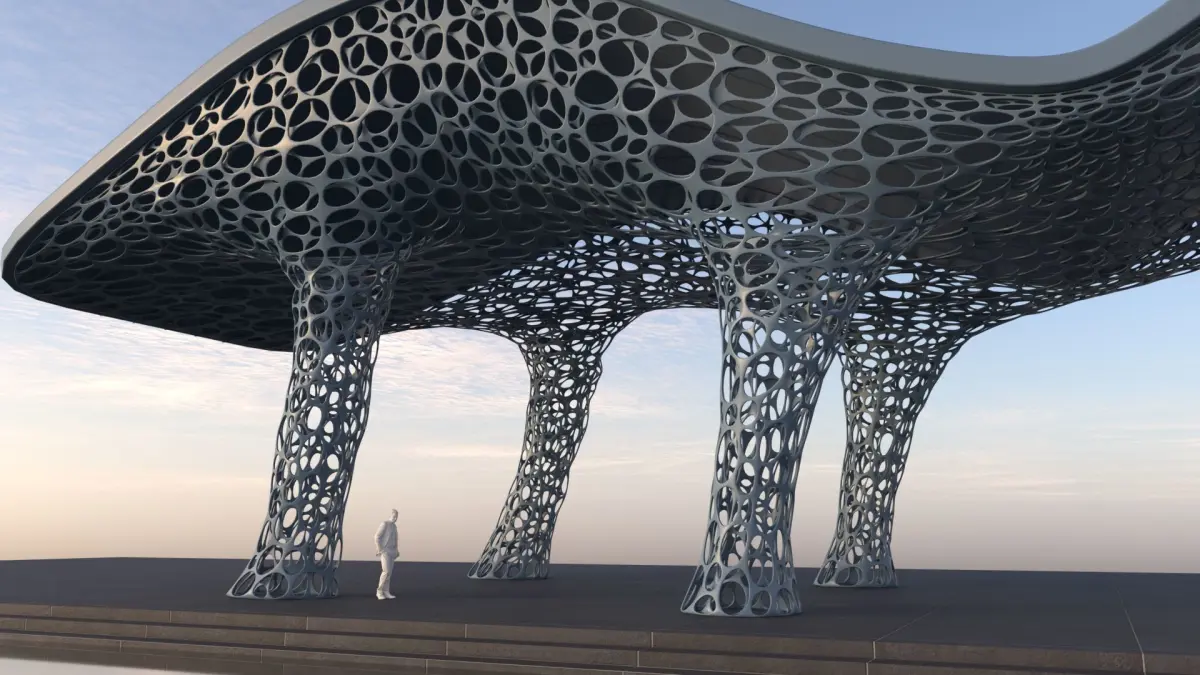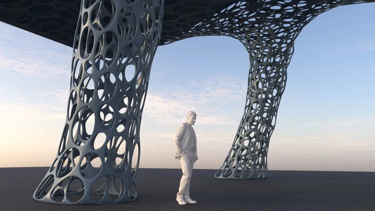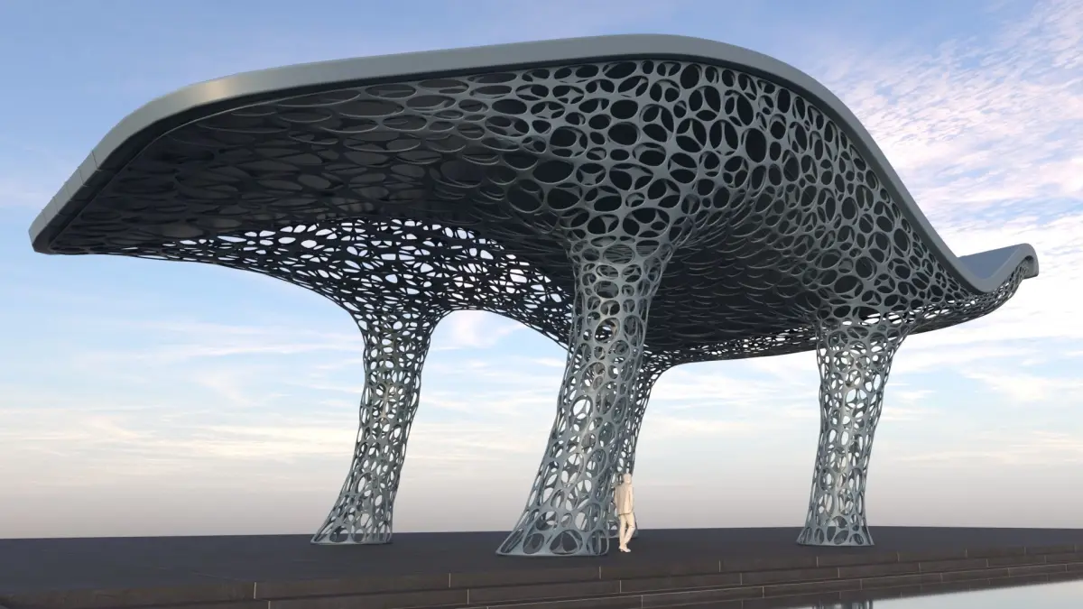 Futuristic Parametric Pavilion – Organic Mesh Canopy DesignThe scene was prepared in 3ds max 2023 and rendered with corona 9.