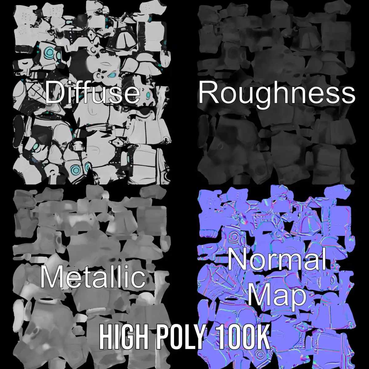 Explore the Futuristic Humanoid Robot Character Model Pack, perfect for sci-fi and tech-focused projects. Each model has 3 levels of detail: low-poly (1000 triangles for mobile), middle-poly (10,000 triangles for environment), and high-poly (100,000 triangles), which allows for the use of this model in production rendering (such as 3ds Max, Maya, Cinema 4D, Blender, Vray/Corona/Cycles and all other), game engines (Unity and Unreal compatible), and interactive presentations, providing a choice of detail based on the LOD System principle. This model is ideal for video games, movies, and VR experiences, offering a sleek metallic design with blue accents. The model's textures are PBR, Diffuse, NormalMap, and reflection/roughness/metallic, suitable for any modern rendering engine. All models are accurately unwrapped and have no overlapping UVs. All textures are 4096*4096 in size. The first image is the reference used for creating the 3D model. It is important to carefully evaluate the quality of the model by examining the preview images that display the topology and polygonal mesh. These previews (WIRE and WEB 3D Preview) clearly demonstrate how accurately the model matches the original reference and how well the geometry has been executed. Please like and leave a comment if you enjoyed the model.