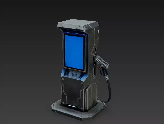 The Overall Concept This asset is a high-tech fueling pump for the future. It is designed to look like a hydrogen or electric charging point for sci-fi cities, replacing old gas pumps with clean energy technology.