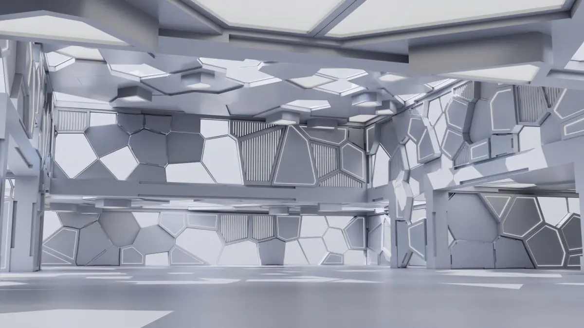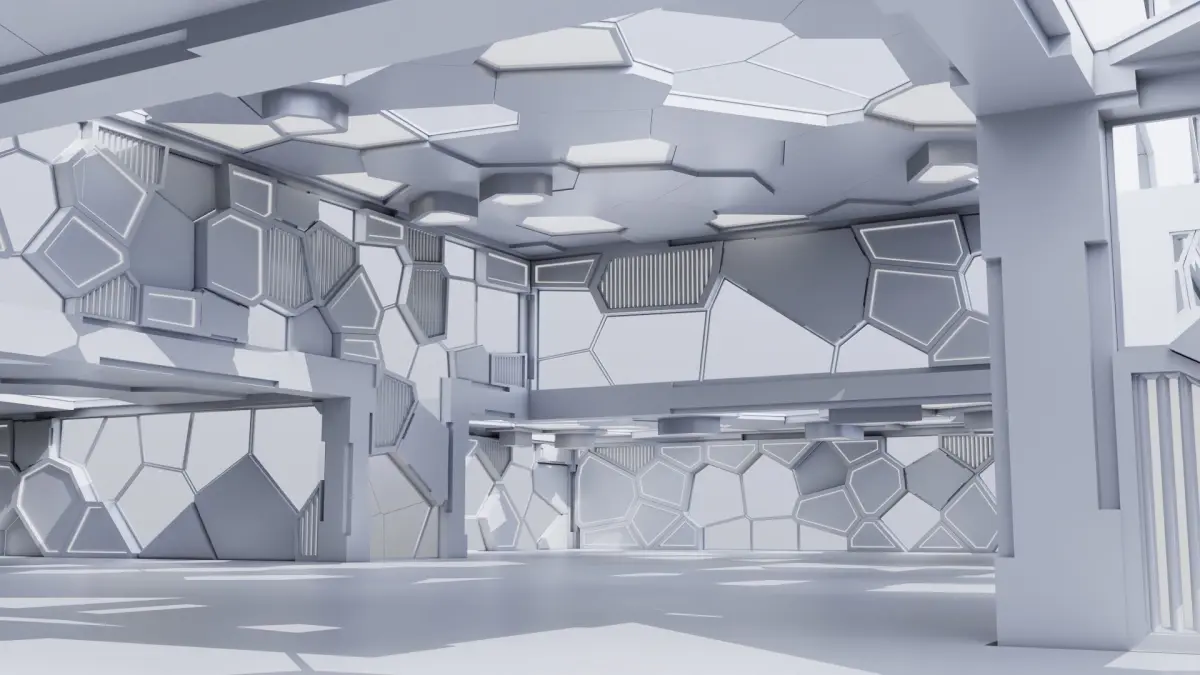 Futuristic Interior scene. Lighting setup is not included. Metaverse ready.