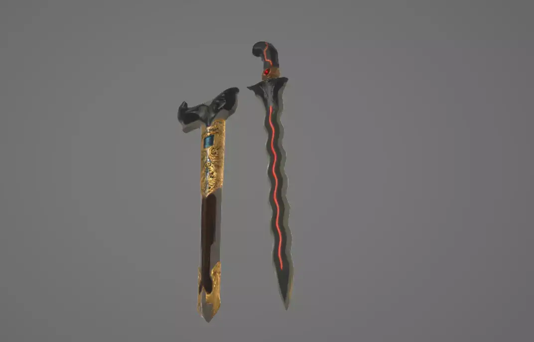 A high-quality, futuristic interpretation of the traditional Indonesian Kris (Keris). This model blends traditional ethnic aesthetics with a modern sci-fi/fantasy twist, featuring glowing red neon-like energy veins along the blade and ornate gold-metallic detailing on the hilt and sheath. Perfectly optimized for modern game engines and high-end architectural visualizations.