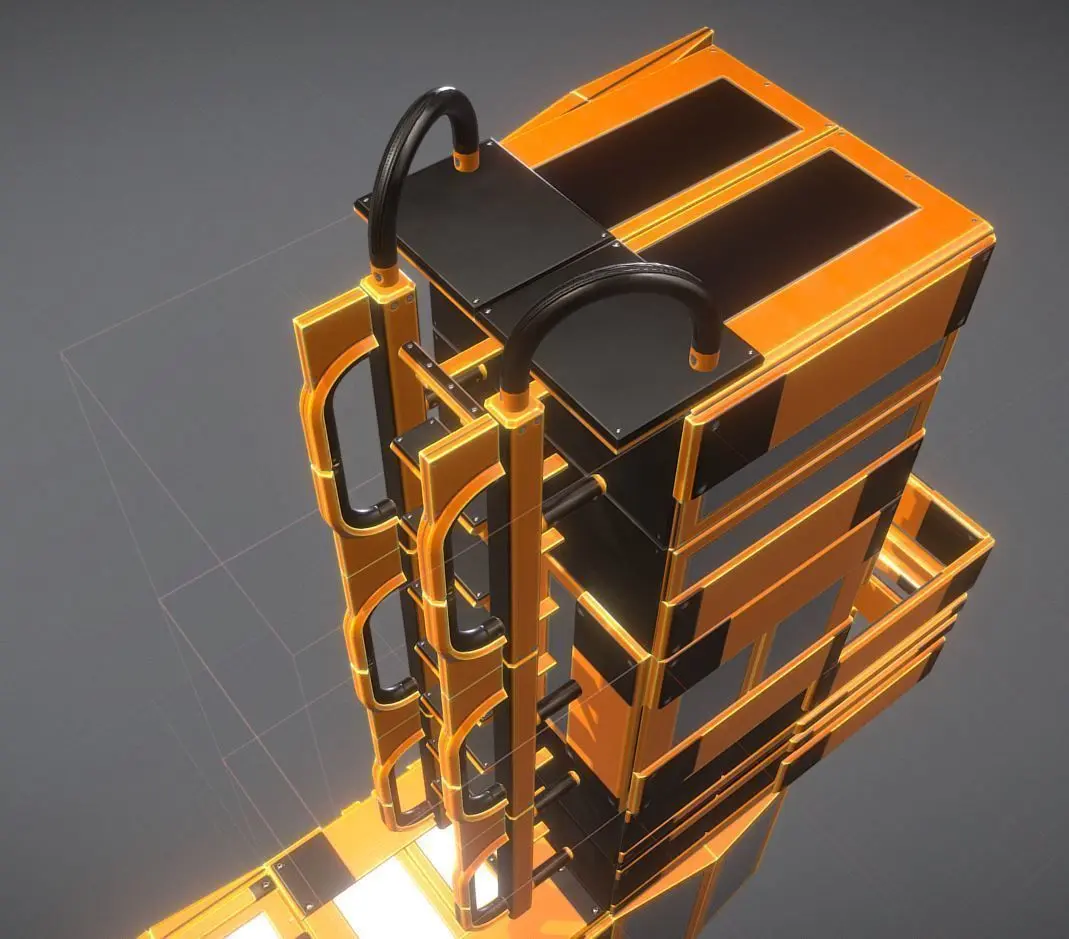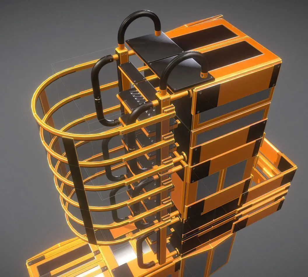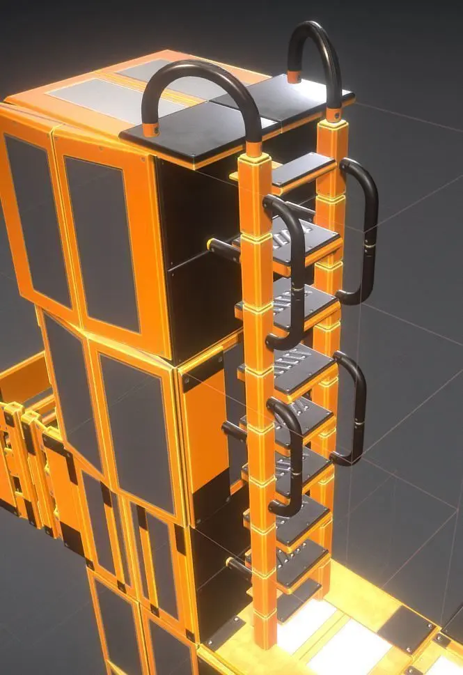 Futuristic Ladders Orange Painted Metal Modular Low-poly 3D model