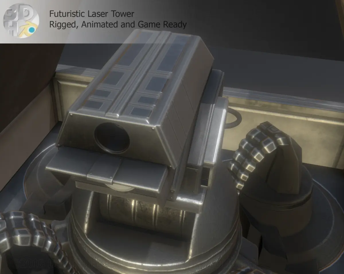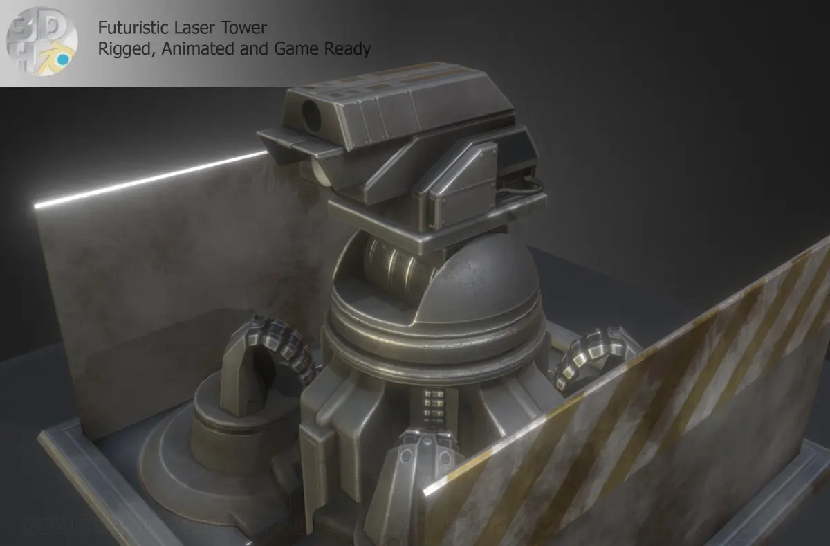 Animations: - Idle animation (loopable) - Uplifting animation , laser tower coming out of the ground (loopable)