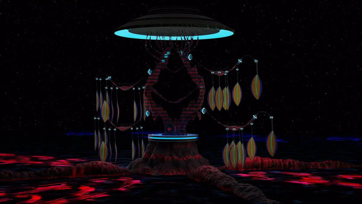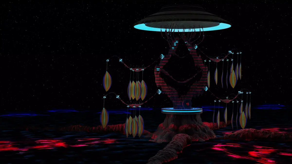 This is a tree that is falling apart and slowly dying, yet it is being kept alive using futuristic technology.The tree has been severely damaged, but energy systems are sustaining it, because trees are the future and essential for human survival.If you observe carefully, you will notice that the tree is broken in many places. Wherever it has cracked or fractured, advanced futuristic mechanisms have been used to reconnect and support it, ensuring that it does not break further and continues to stay alive.