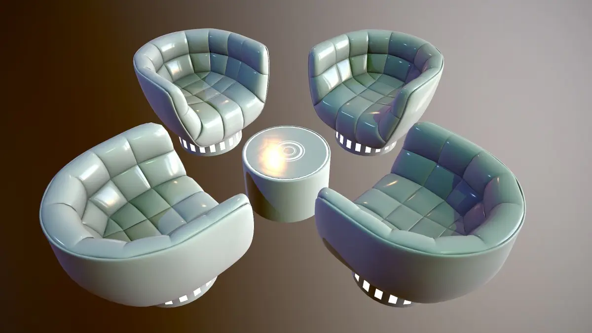 Professionnally made futuristic Lounge table and chair set.