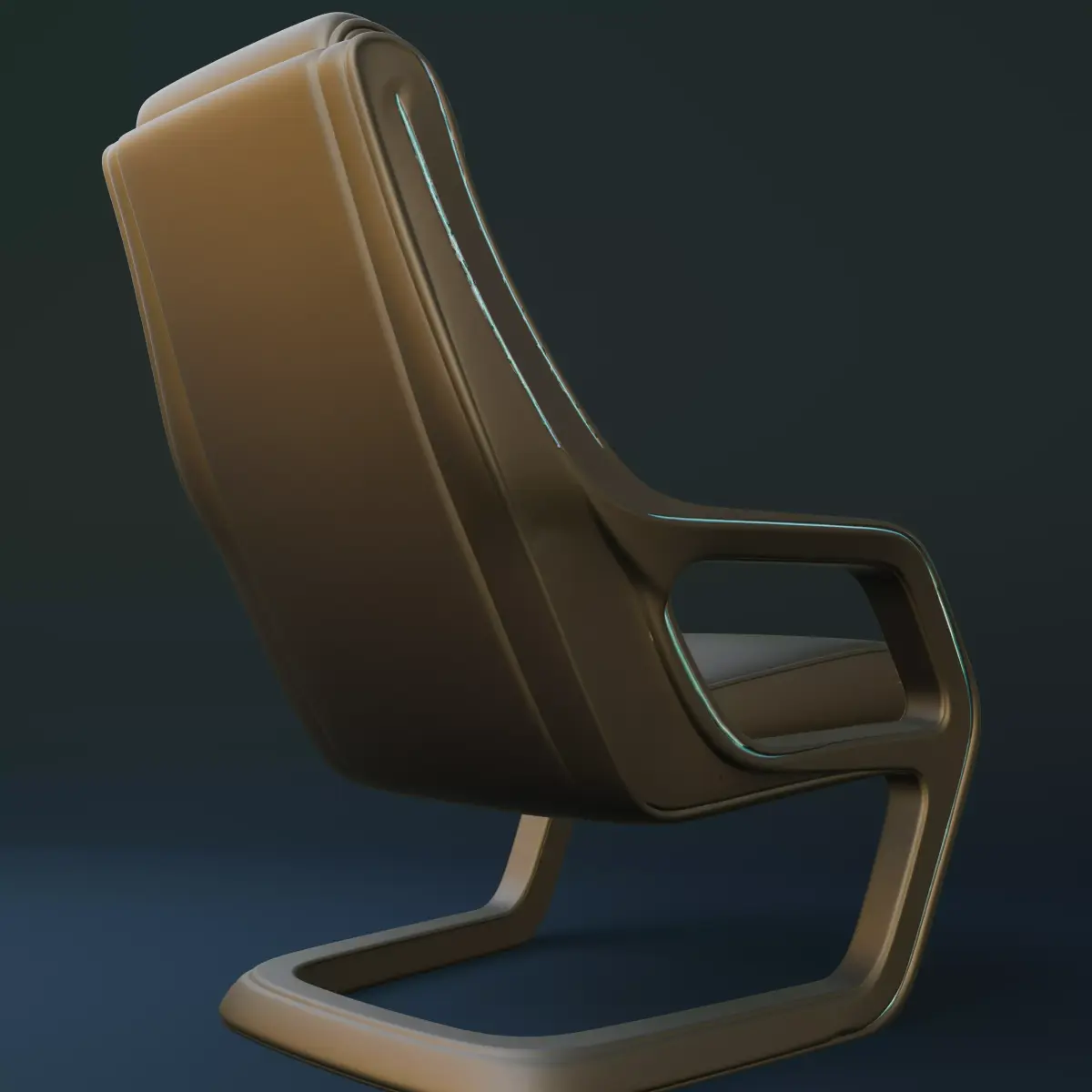 This chair features a smooth sculptural frame crafted from matte metal and carbon fiber, paired with premium leather cushions and integrated LED accent lighting. Its sleek, curved structure makes it perfect for sci-fi interiors, modern offices, or luxury concept environments.