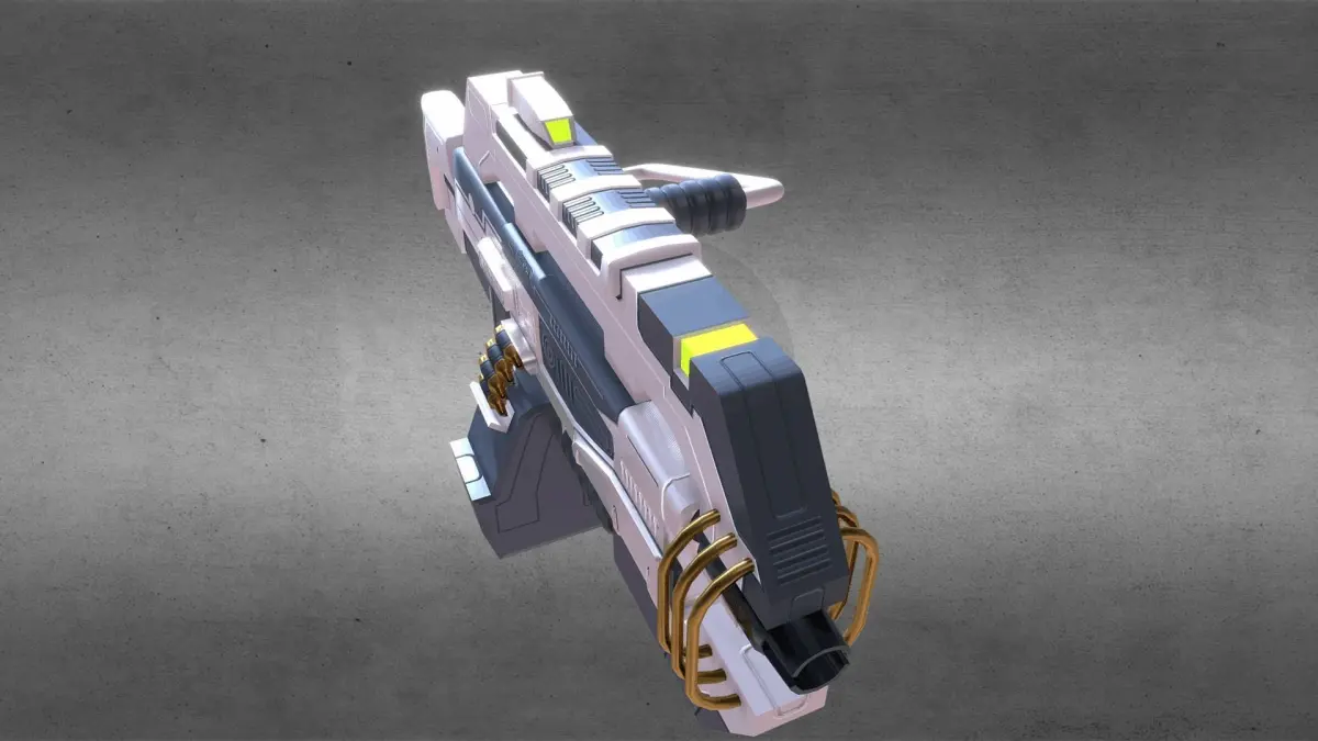 A futuristic machinegun. Done in 3DS Max and textures drawn in Adobe Photoshop. Contains .obj, .mtl and .fbx formats and the original .max files and all textures (diffuse, spec level, reflection maps and normals). Enjoy!