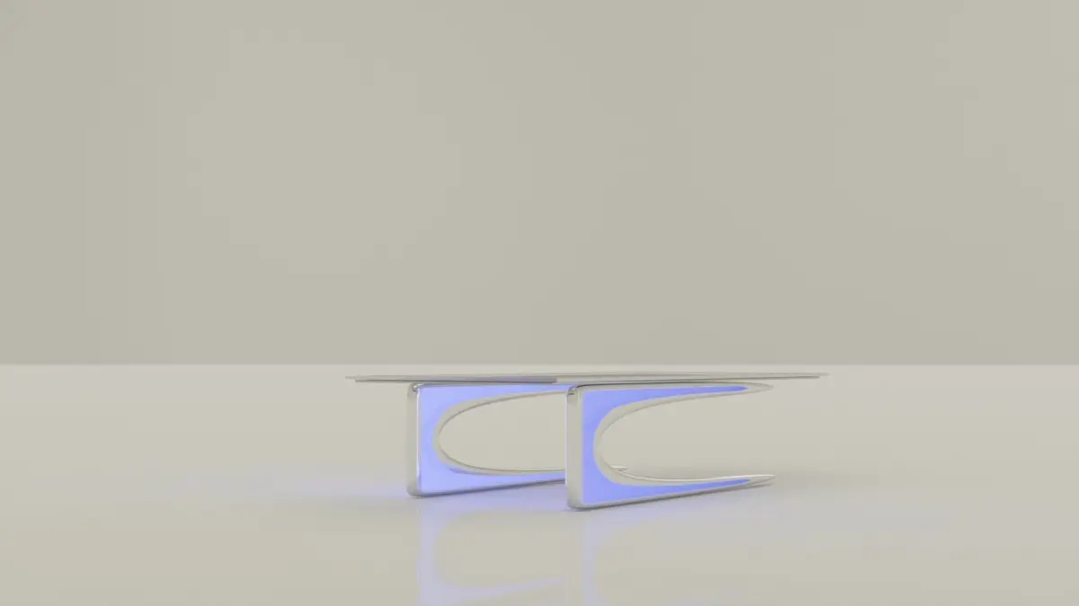 This futuristic metal table seamlessly merges modern aesthetics with cutting-edge technology, elevating any space it graces. Crafted from sleek, brushed metal, its minimalist design exudes sophistication and innovation. The table's surface is smooth and reflective, enhancing its futuristic appeal.