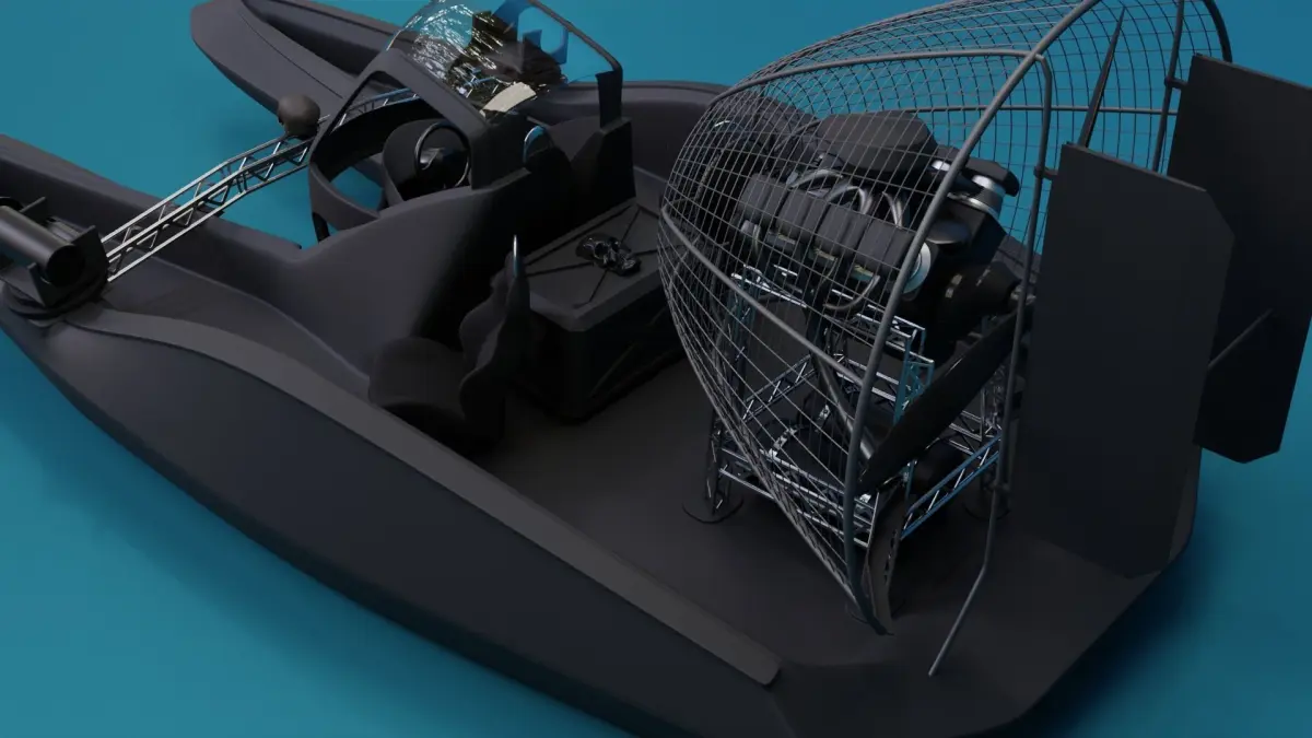 Futuristic Military Airboat, created and modeled in Blender 3.1I used many different reference images of regular swamp airboats commonly used in the Florida Everglades.I also used several different reference images of military airboats and hovercrafts.The overall design elements and dimensions were created to be as realistic as possible, while also supporting the futuristic look.I used a couple different reference images of Cessna and regular automobile V8 engines, for designing and modeling a fairly realistic looking engine.The mini-guns mounted on the sides were also created by using a reference image easily found online.The main boat hull was UV unwrapped and carbon fiber material added via the Blender Shader Nodes.Files included with your purchase:.Blend .Stl.Obj.Mtl.FBX