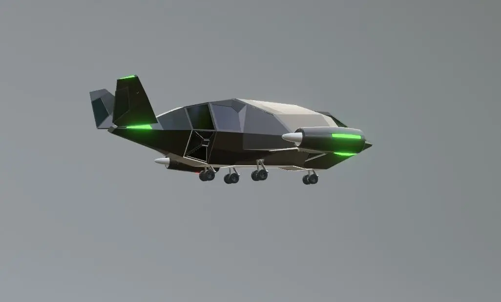 A model of a futuristic military transportation jet/bomber in blenderfile format. Not rigged, model, ready for animations.