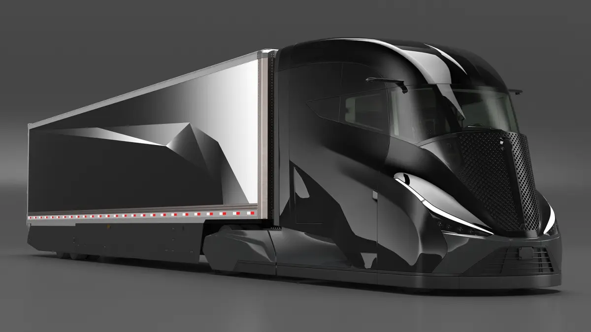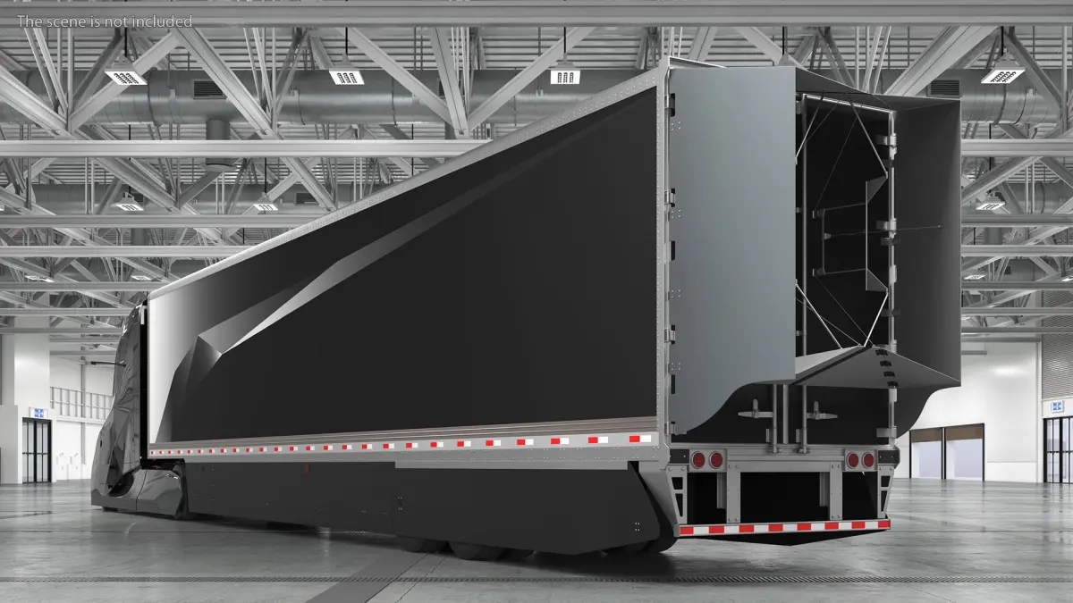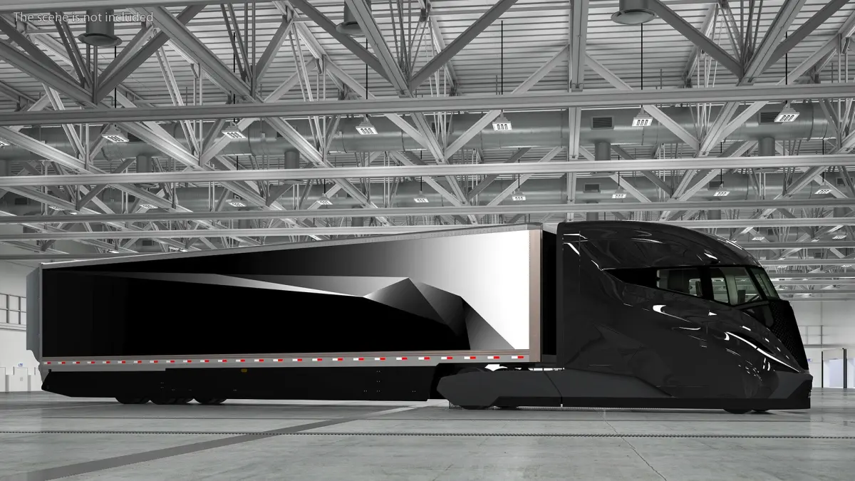 Futuristic Modern Truck Black Rigged for Maya is a three-dimensional model of modern aerodynamic hybrid semi-trailer truck prototype that developed to significantly improve fuel efficiency and reduce emissions (diesel engine as the main power source).