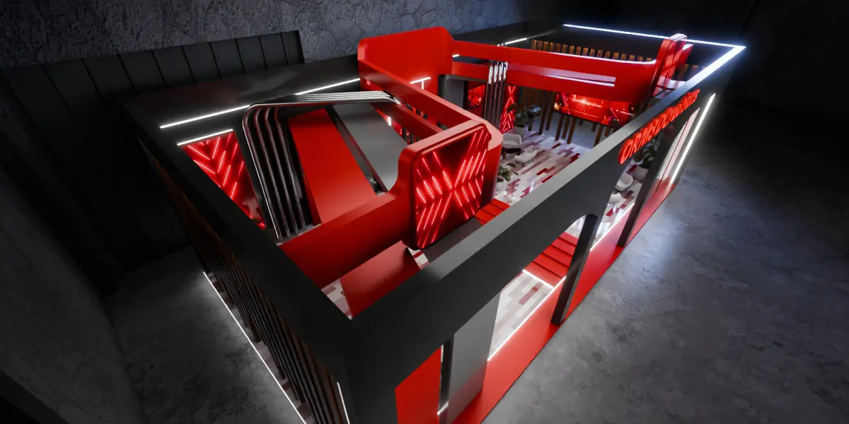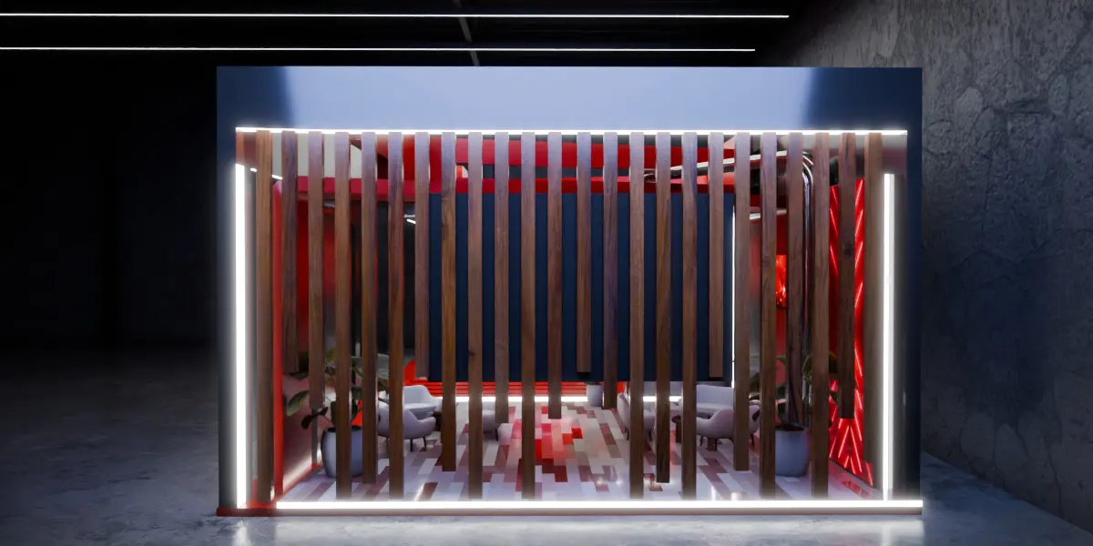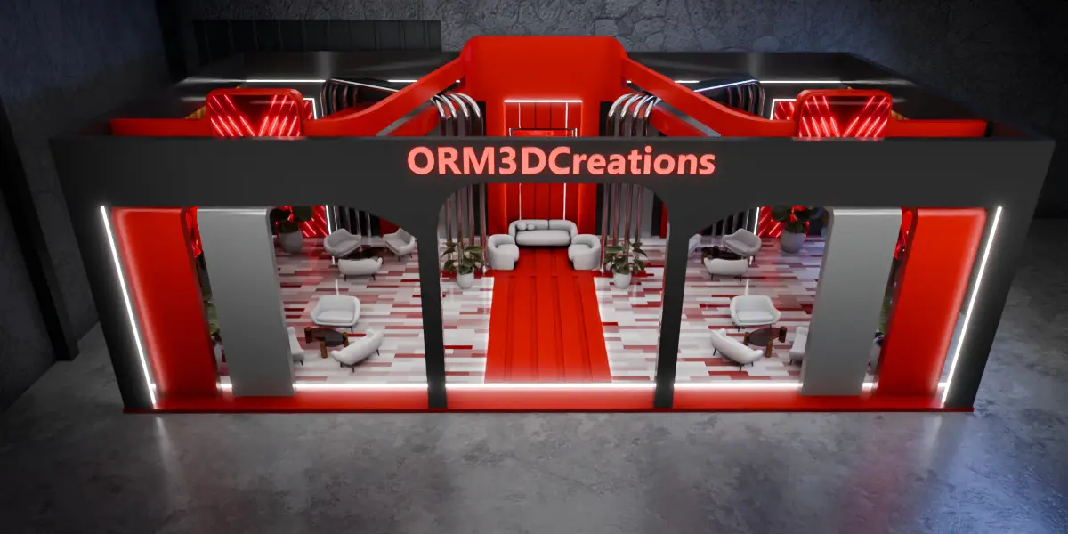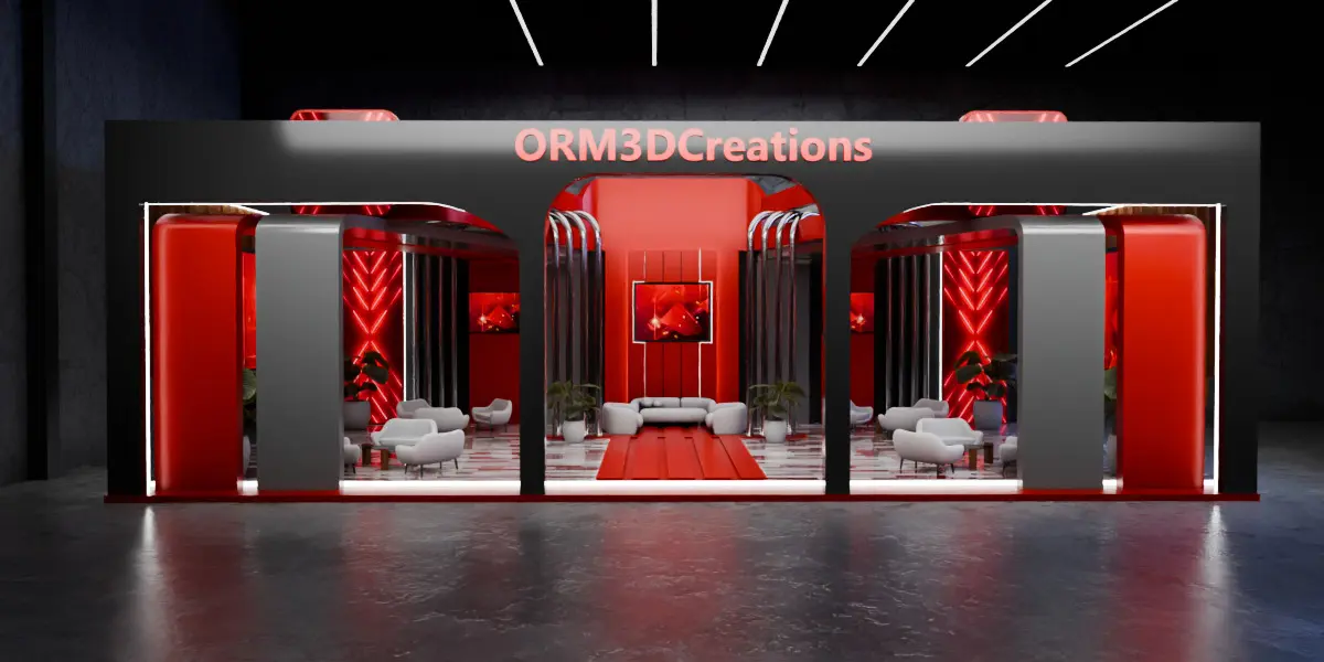 This is a high-quality 3D model of a futuristic modular exhibition booth designed for premium trade shows, expos, and corporate events.