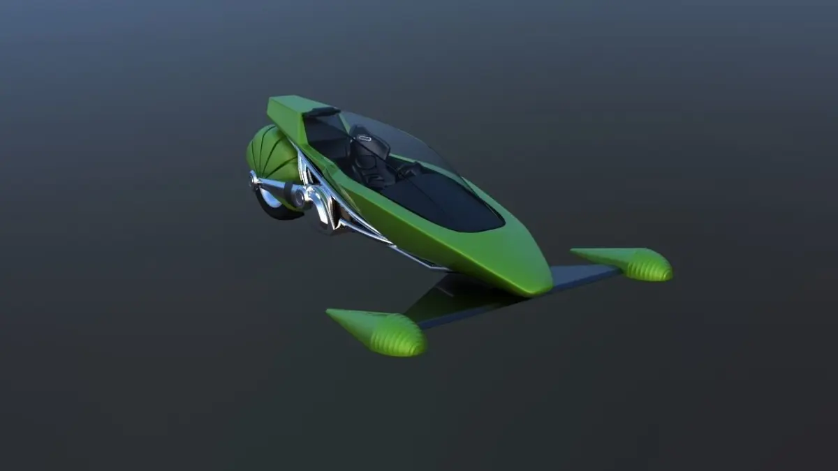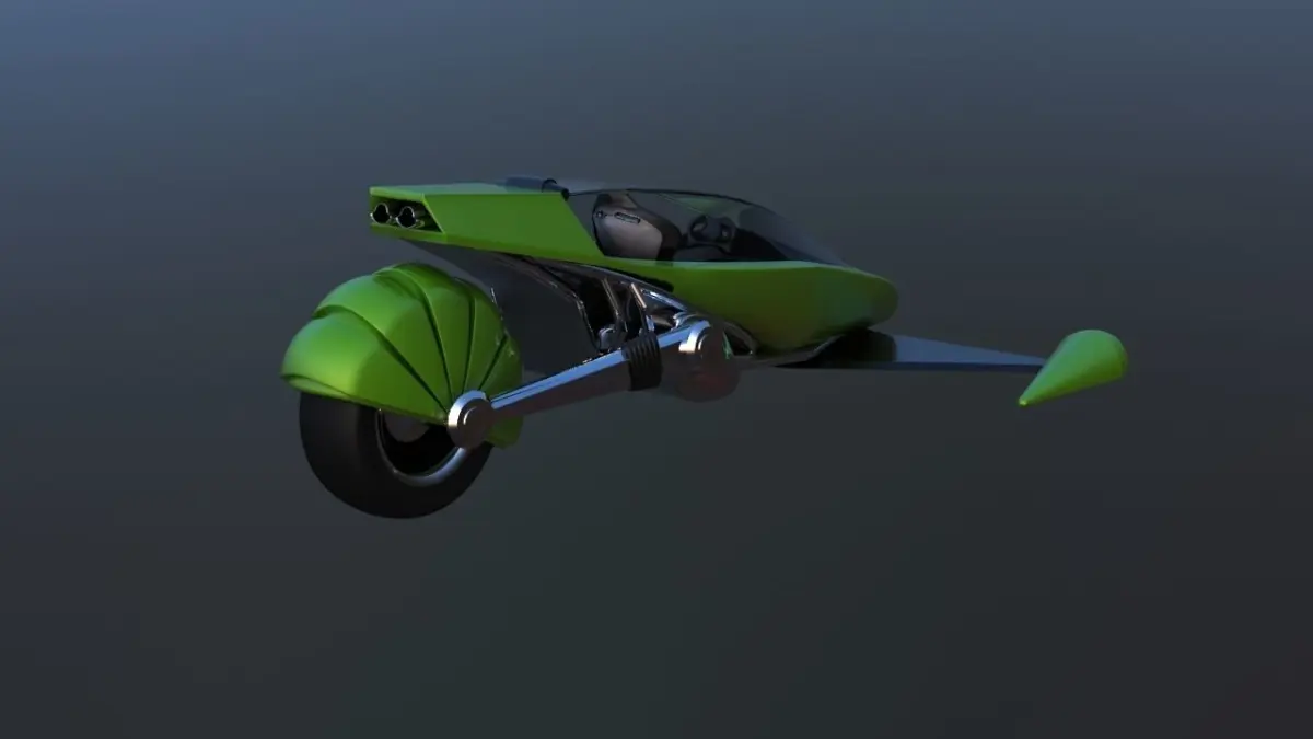 Model of a futuristic motorcycle. The model has rear-wheel drive and jet turbines instead of the front, a large window and a simple interior for a single driver's seat. The model is suitable for cyberpunk scenes and similar topics about the future! The 3d max file contains materials for painting in different colors.