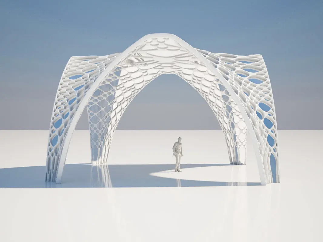 Futuristic (parametric) pergola model for people rest at park and town center.Pergola modeled 3ds max 2014 and rendered vray 3.The model is also available in obj format.There are pergola with glass and without glass in max file.Unwrap uv maps of any model on the stage are not processedThe human model seen in the renders is used for reference.Display Unit Scale:cm, System Unit Scale:cmPergola dimension: width 1017cm, height 626 cm