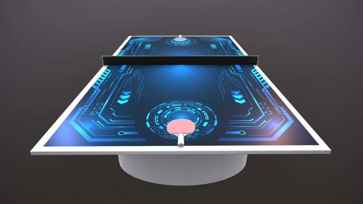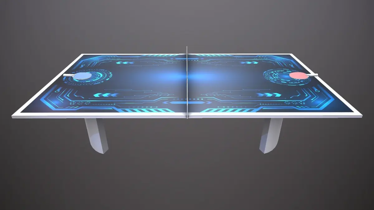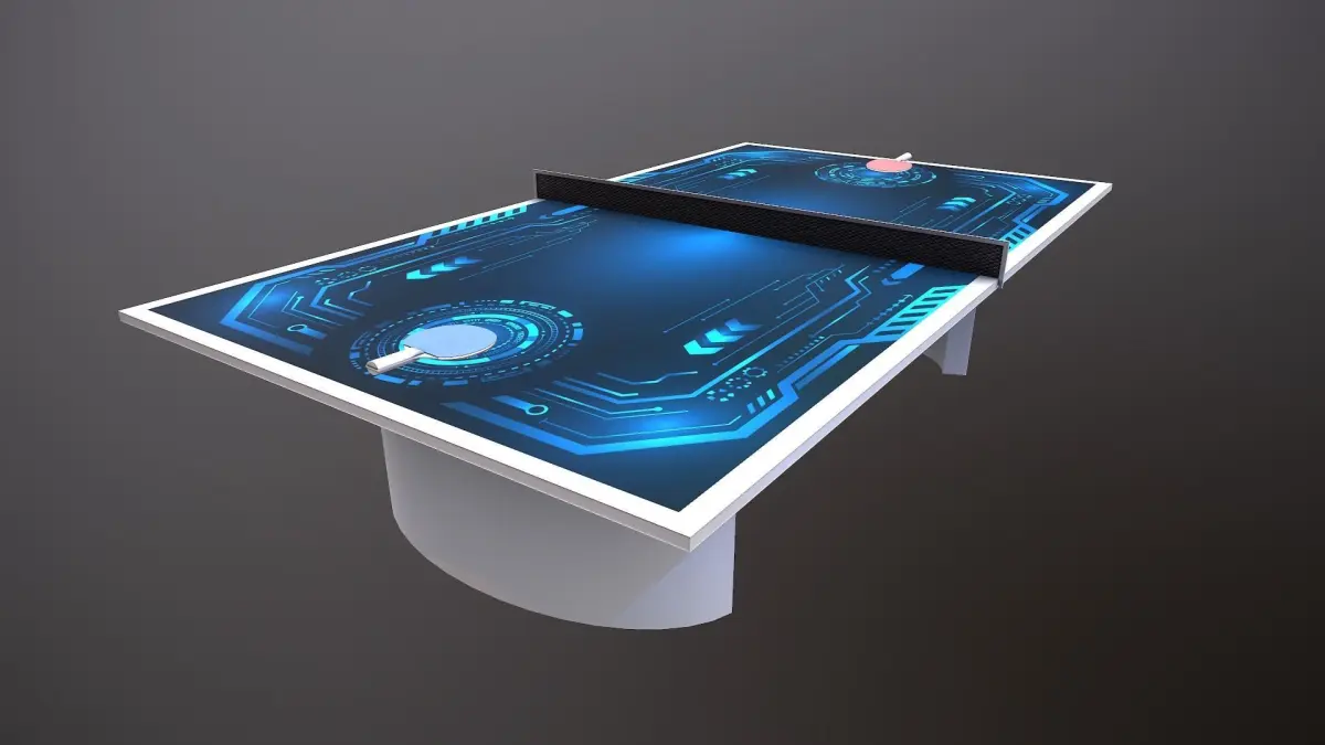 Professionnally made futuristic Ping Pong table for game with rackets.