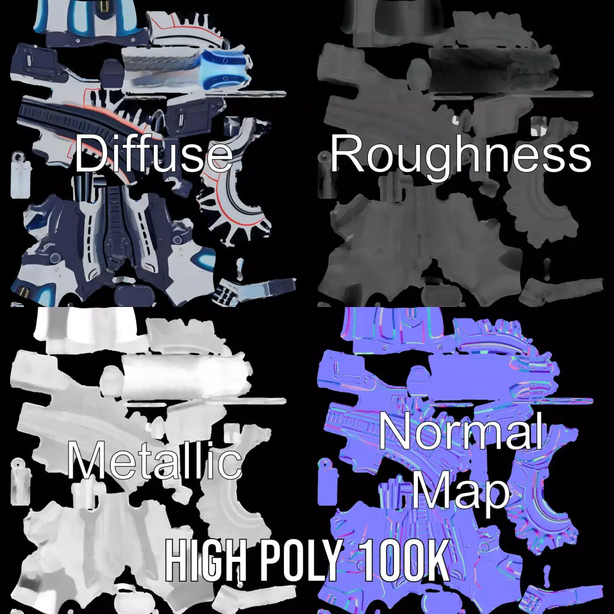 This futuristic plasma blaster model features a sleek design and advanced technology elements, perfect for sci-fi environments or games. Each model has 3 levels of detail: low-poly(1000 triangles for mobile), middle-poly(10 000 triangles for environment), and high-poly(100 000 triangles), which allows for the use of this model in production rendering(such as 3ds max, Maya,Cinema4d, Blender, Vray/Corona/Cycles and all other), game engines(Unity and Unreal compatible), and interactive presentations, providing a choice of detail based on the LOD System principle. It is ideal for use in video games, VR experiences, and film production where a high-tech weapon is required. The model's textures are PBR, Diffuse, NormalMap, and reflection/roughness/metallic, which are suitable for any modern rendering engine. All models accurately unwrapped and have no overlapping UV. All textures are 4096*4096 in size. If you liked the model, please like and leave a comment. Enjoy creating with it!