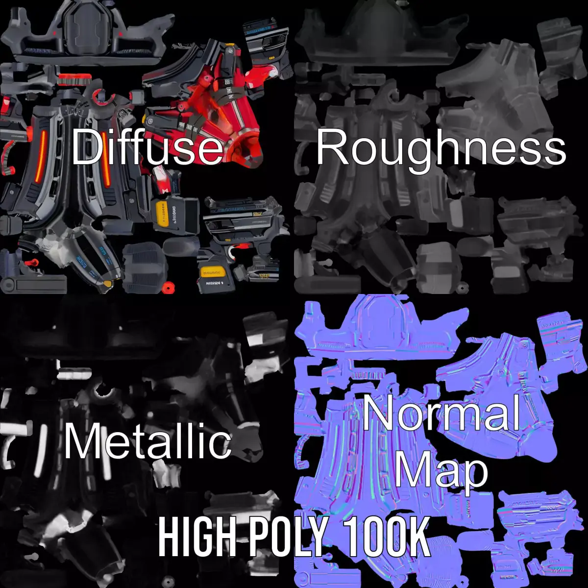 This Futuristic Plasma Rifle model pack brings cutting-edge design to your digital arsenal. Featuring sleek black and metallic finishes with vibrant red accents, it is ideal for sci-fi games, movies, and animations. The model is designed with versatile 3D applications in mind, offering 3 levels of detail: low-poly for mobile experiences, mid-poly for environment integration, and high-poly for production rendering. Compatible with major game engines and rendering software, it ensures seamless workflow integration. PBR materials with 4096*4096 textures enhance realism, making it perfect for interactive presentations and high-end visual productions. Accurate UV mapping and no overlapping UVs ensure efficiency and ease of use. Enhance your project with this sophisticated weapon model, and please like and leave a comment if you enjoy using it.