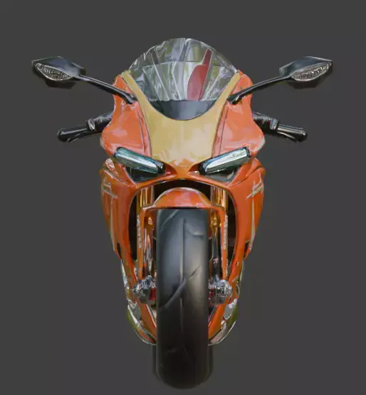 High-Fidelity Mechanical Detail: Includes a detailed exposed engine core, high-performance braking assemblies, and a robust gold-anodized front fork suspension system.